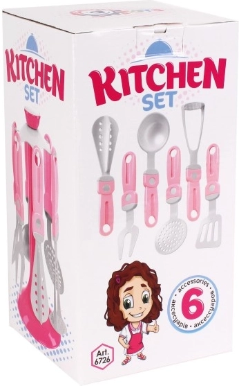 Se ami gli oggetti di design, non può mancare a casa tua questo originale supporto con utensili da cucina per piccole massaie. Un accessorio indispensabile per tutte le piccole cuoche e aiutanti in casa, o per le bambine che desiderano cucinare qualcosa di buono per le proprie bambole. Il set contiene 6 pezzi di utensili insieme a un pratico supporto, così avrai tutto a portata di mano. Tutto è realizzato in plastica di qualità e sicura. Adatto a bambini dai 3 anni in su.