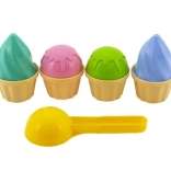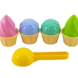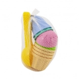Coni e palline in delicate sfumature di rosa, azzurro, verde e beige rendono il gioco del gelato una gioia a prima vista.