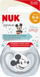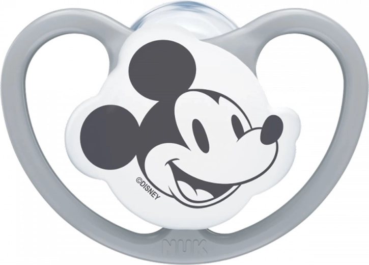 Leggero e delicato succhietto in silicone per bambini NUK Space con motivo Disney Mickey Mouse, pensato per neonati 0–6 mesi. Grazie alle ampie aperture di ventilazione lascia respirare la pelle sensibile, è senza BPA e si pulisce facilmente. Incluso un pratico box riutilizzabile per una conservazione igienica e la sterilizzazione nel forno a microonde.