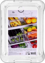 Pratico organizer trasparente per frigorifero con dimensioni 27 × 19 × 11,5 cm che aiuta a mantenere gli alimenti ordinati e ben visibili. Grazie alle maniglie integrate si trasporta e si estrae facilmente dai ripiani. Realizzato in plastica resistente e idonea al contatto con gli alimenti, adatto anche alla lavastoviglie. Ideale per frutta, verdura e altri accessori da cucina. Design trasparente, struttura robusta, manutenzione semplice e maniglie comode per l’uso quotidiano.