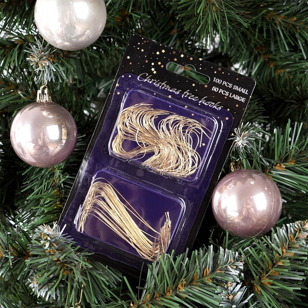 La confezione contiene 100 ganci più piccoli (4 cm) e 50 più grandi (6 cm), così potrai appendere sia decorazioni delicate che palline più robuste.
