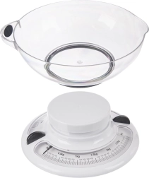 Questa bilancia da cucina meccanica è un aiutante affidabile per la cucina di tutti i giorni. Grazie alla ciotola trasparente rimovibile da 1,4 l, si pesano facilmente ingredienti secchi e liquidi. Il quadrante analogico con doppia scala in g/kg e lbs/oz è chiaro e consente una comoda regolazione a zero. La bilancia non richiede batterie, quindi è sempre pronta all’uso.