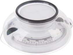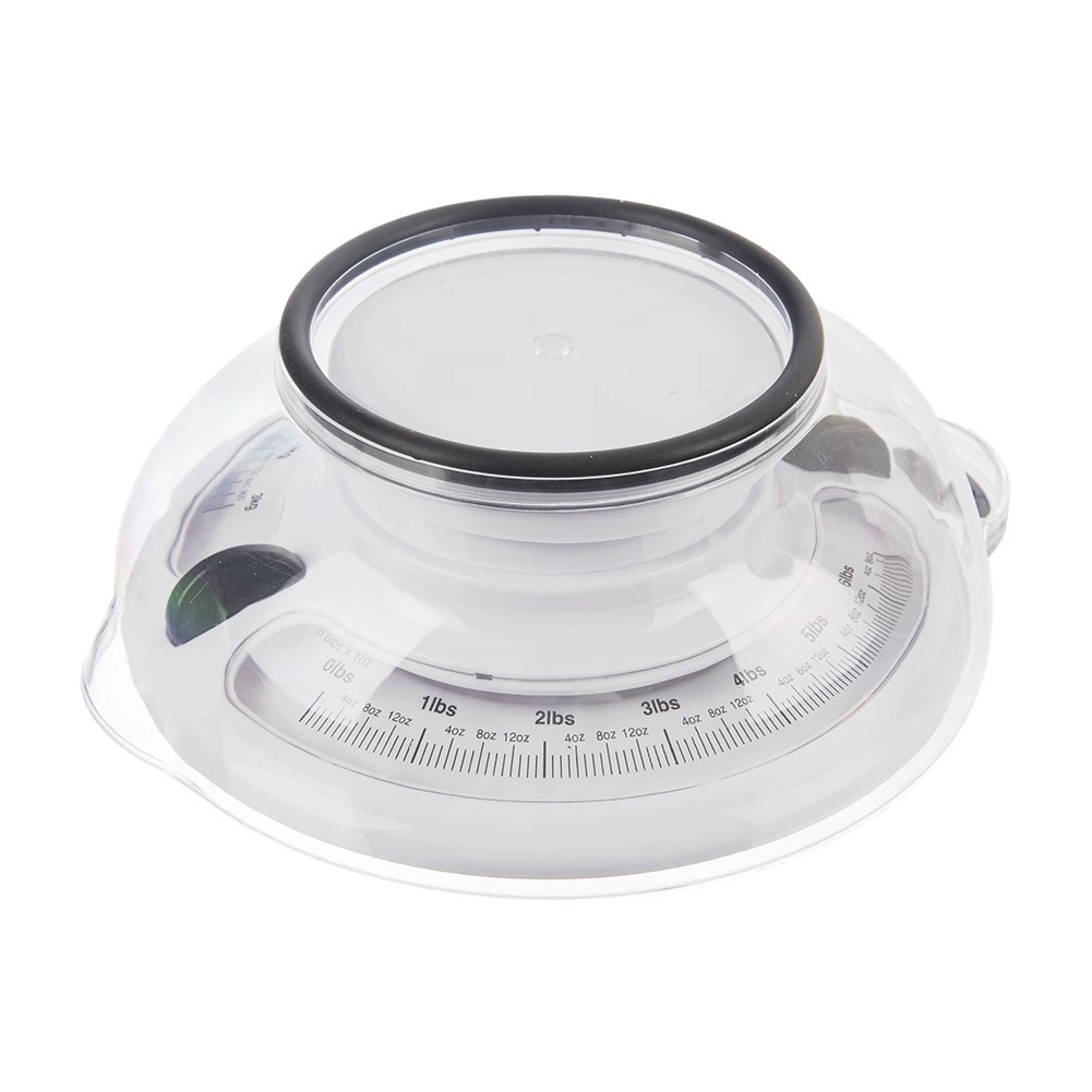 Ampio quadrante circolare con marcature ben visibili in grammi e chilogrammi, nonché in libbre e once. Il funzionamento meccanico non richiede alcuna batteria.