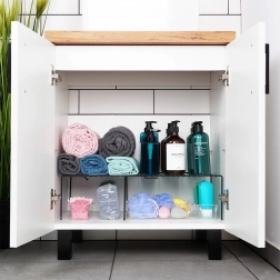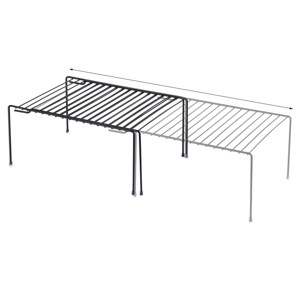 Sfrutta al massimo ogni ripiano. La mensola in metallo estensibile, in elegante colore nero, suddivide efficacemente l’altezza del mobile in due livelli, così piatti, barattoli o bicchieri saranno riposti in modo ordinato e sicuro. Grazie alla regolazione continua della lunghezza da 34,5 a 48 cm, si adatta facilmente a mobili e ripiani di diversa larghezza.