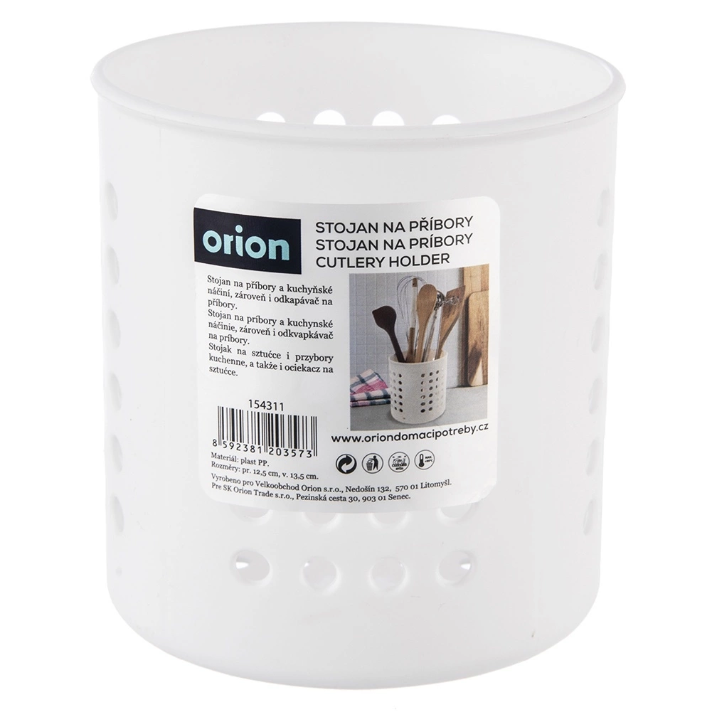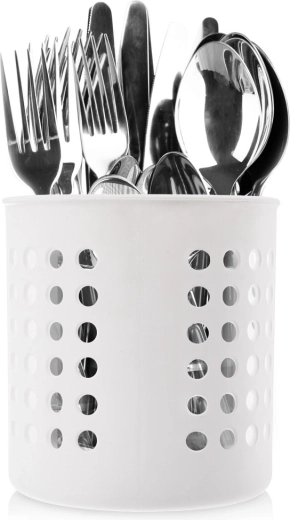 Pratico scolaposate e porta utensili da cucina bianco che mantiene posate e mestoli ordinati e a portata di mano. Grazie alle pareti e al fondo perforati garantisce drenaggio dell’acqua e circolazione dell’aria, è leggero, resistente e adatto alla lavastoviglie. Dimensioni compatte (diametro 12,5 cm, altezza 13 cm) adatte a ogni piano cucina.