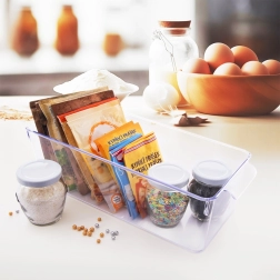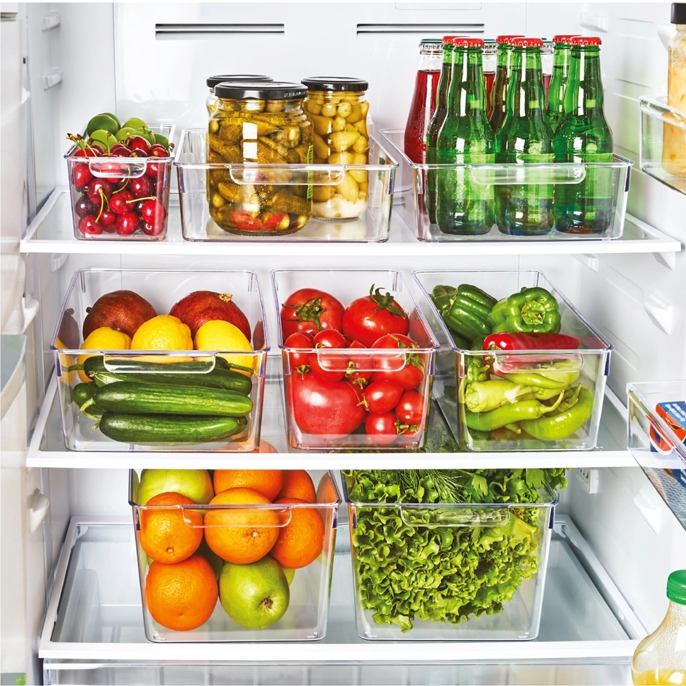 Pratico organizer trasparente per frigorifero dalle dimensioni 32,5 × 15 × 10 cm, aiuta a mantenere l’ordine tra gli alimenti e a sfruttare al massimo lo spazio. Grazie alla maniglia integrata si estrae facilmente, è in plastica sicura per alimenti e si pulisce alla perfezione. Ideale per frutta e verdura, bottigliette e barattoli e altre necessità domestiche.