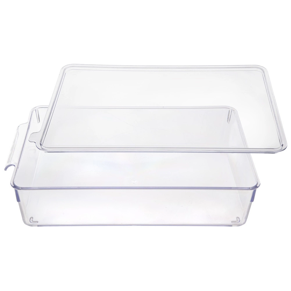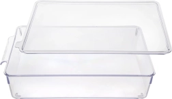 Pratico organizer per frigorifero con coperchio rimovibile dalle dimensioni di 32,5 × 20 × 7,5 cm, che aiuta a mantenere gli alimenti ben ordinati e più a lungo freschi. Grazie al design trasparente hai sempre il contenuto sotto controllo e la maniglia integrata facilita la manipolazione. Realizzato in plastica resistente e sicura per gli alimenti, adatta al contatto con i cibi e in grado di sopportare temperature da -10 °C a +90 °C. Impilabile, facile da pulire e ideale per frutta, verdura e altre necessità domestiche.