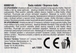 Il set contiene tutto il necessario per un piccolo tè: teiera, tazzine con piattini e cucchiaini in colori allegri. Confezionato in una pratica rete che facilita sia il riordino sia il trasporto. Adatto dai 12 mesi.