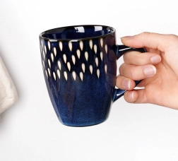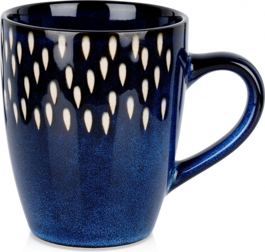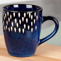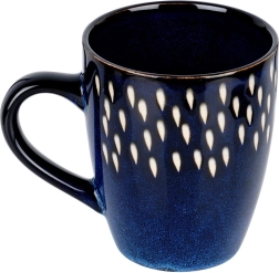 Questa tazza dal design elegante in gres ceramico resistente è ideale per l’uso quotidiano. La smaltatura blu scuro con un delicato motivo di gocce bianche dona alla tua cucina un look moderno, mentre il manico confortevole garantisce una presa sicura.