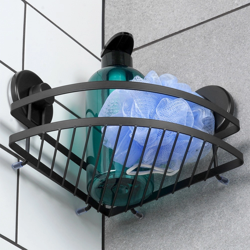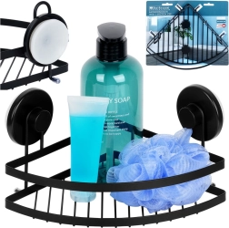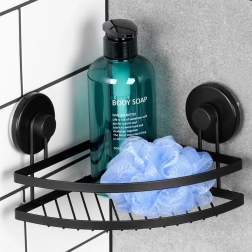 Questa mensola angolare da doccia unisce design minimalista e alta funzionalità. Il metallo verniciato a polvere in nero opaco è durevole, facile da pulire e si inserisce perfettamente in bagni moderni e classici. Grazie a due grandi ventose si fissa in modo sicuro su superfici lisce come piastrelle o vetro, senza forare e senza danneggiare le pareti.