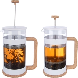 Il french press in vetro WHITELINE unisce l’elegante finitura bianca con accenti in legno e una costruzione funzionale per il rituale quotidiano di preparazione delle bevande. La capacità di 1 litro è ideale per più porzioni di caffè, tè o infusi di erbe. Il fine filtro in acciaio inox separa efficacemente i fondi e le foglie, per una bevanda pulita e aromatica.