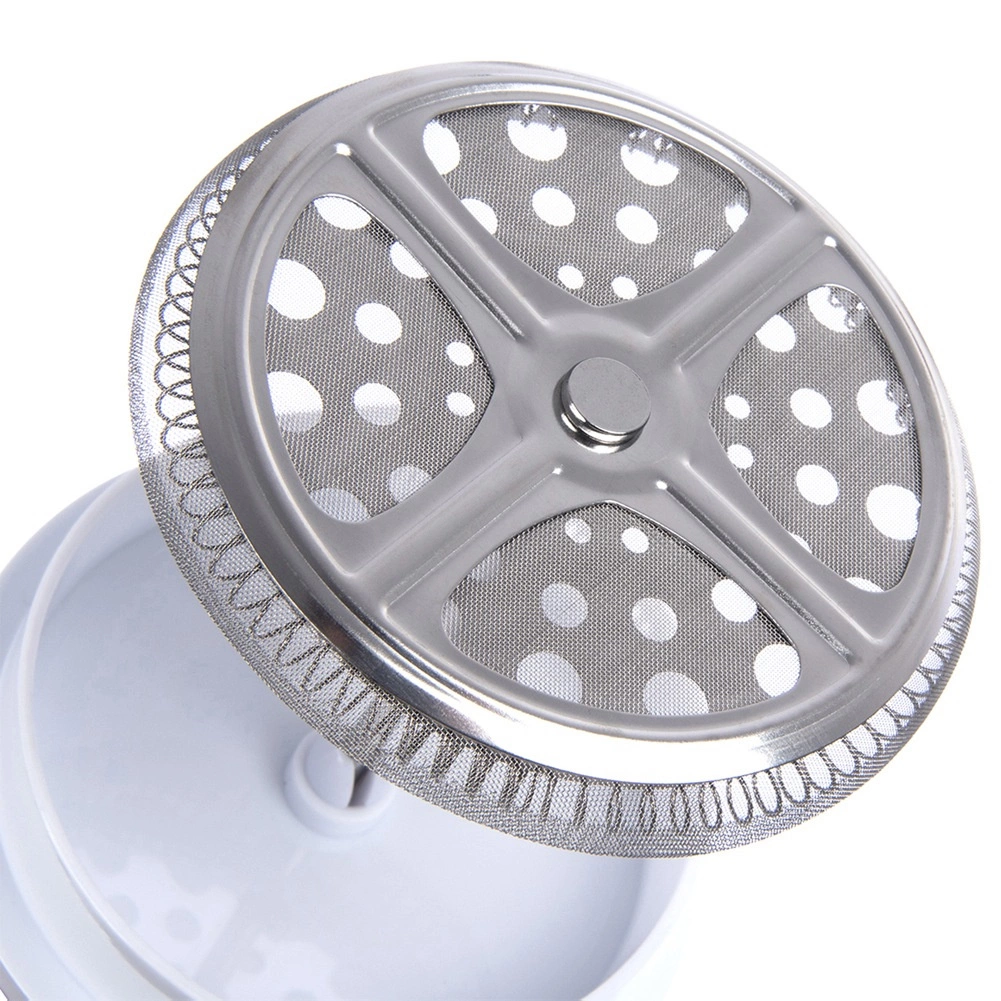 Lo stantuffo in acciaio inox con maglia fine separa efficacemente i fondi di caffè e le foglie di tè, così da servire una bevanda perfettamente limpida e piena.