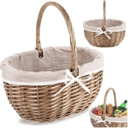 La fodera è di colore beige con bordo decorativo bianco e fiocco. Si rimuove facilmente e si può lavare fino a 40 °C, per mantenere il cesto sempre pulito. Una volta tolta la fodera, è ideale anche come pratico cestino per la raccolta dei funghi.