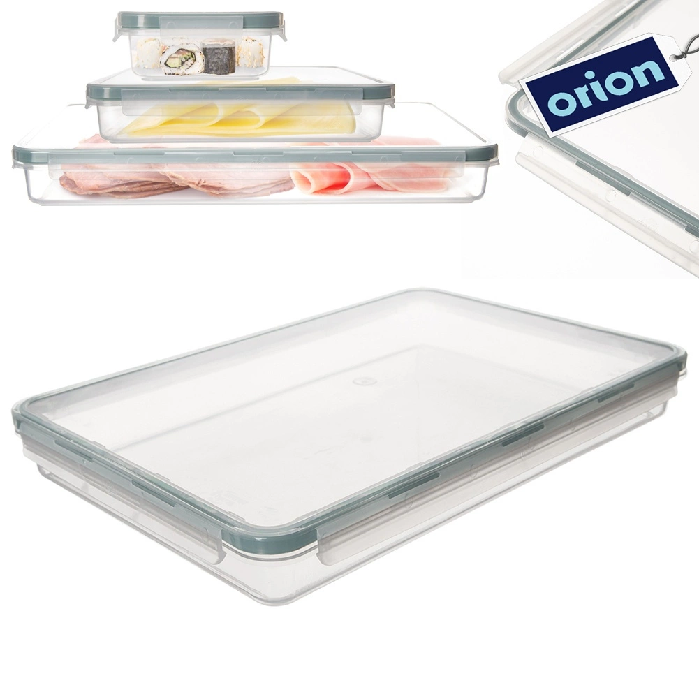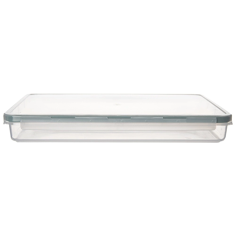 Contenitore rettangolare e basso (32,5 × 21,5 × 4 cm) con capacità di 1,5 l, ideale per conservare formaggi, salumi, piatti pronti o snack. Struttura resistente, leggera e trasparente per un’organizzazione semplice e per trovare rapidamente gli alimenti senza aprire inutilmente.
