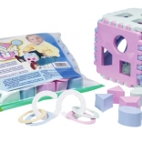 Questo set universale porta ai bambini la gioia della scoperta. Il cubo ad incastri insegna ad associare correttamente le forme, mentre gli anelli sonagli stimolano l’udito e aiutano a sviluppare la coordinazione mano-occhio. Grazie ai colori vivaci e alle superfici piacevoli, il giocattolo stimola vista e tatto.