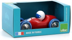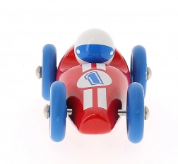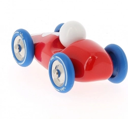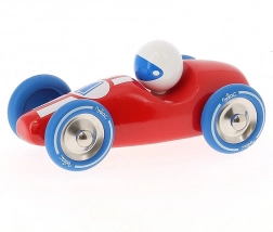 Auto da corsa rossa realizzata in legno laccato con ruote in metallo gommate. È adatta sia per giocare che come decorazione per le camere di bambini o adulti. Prodotta in Francia. Principali caratteristiche: prodotta in Francia