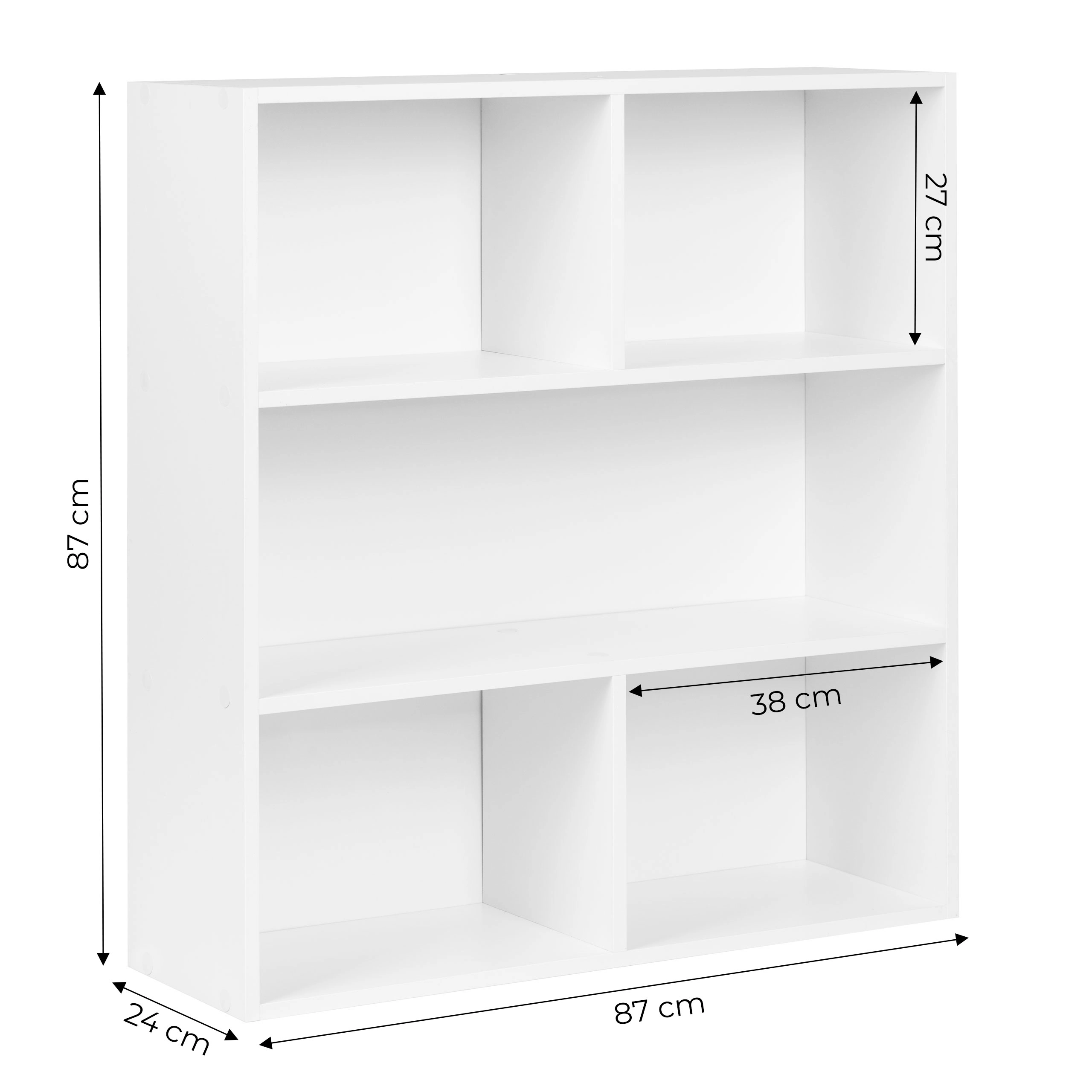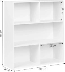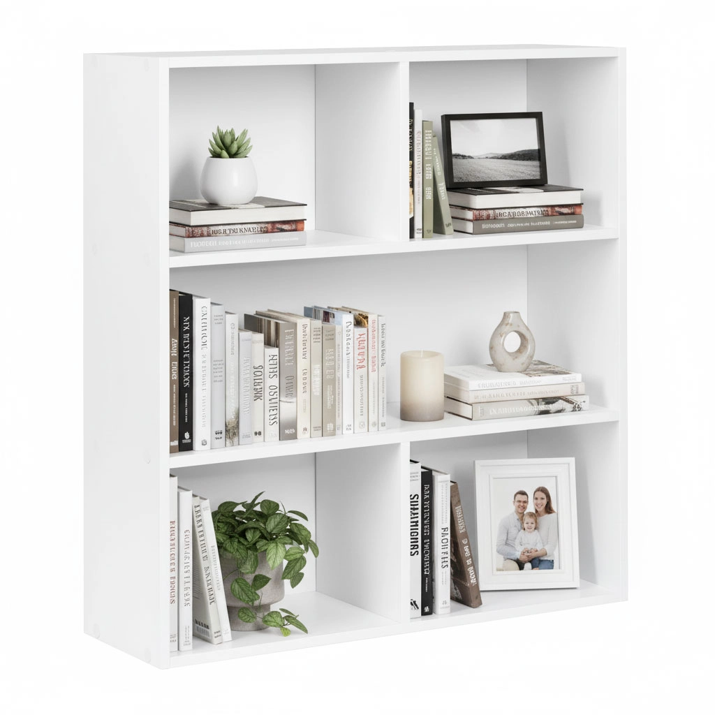 Il raffinato scaffale da pavimento MODERNHOME offre un look minimalista pulito e una suddivisione intelligente dello spazio. Tre ampi ripiani accolgono libri, decorazioni, documenti e box, mentre la finitura bianca opaca si abbina facilmente a interni moderni, scandinavi e classici.