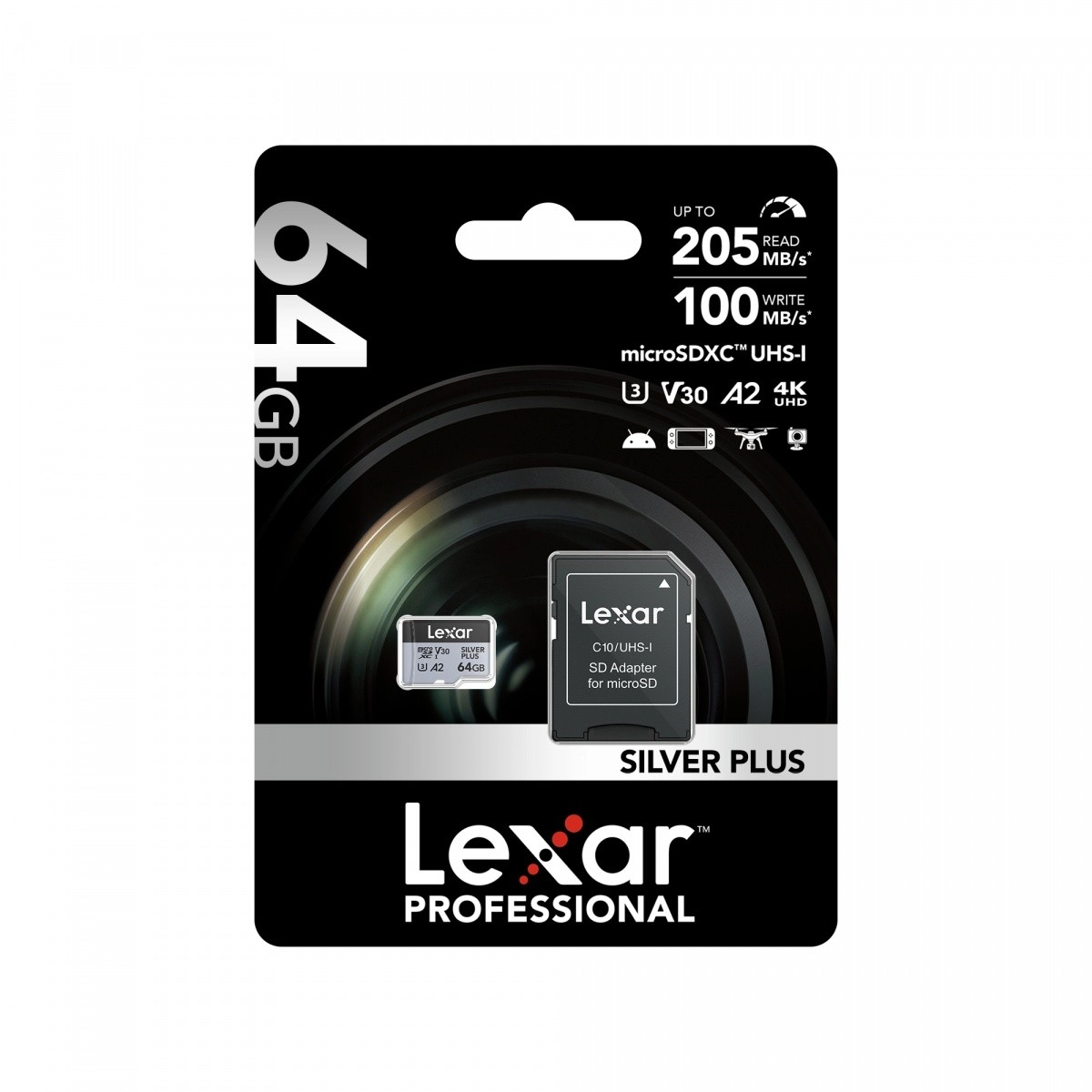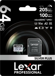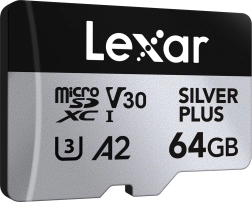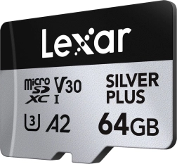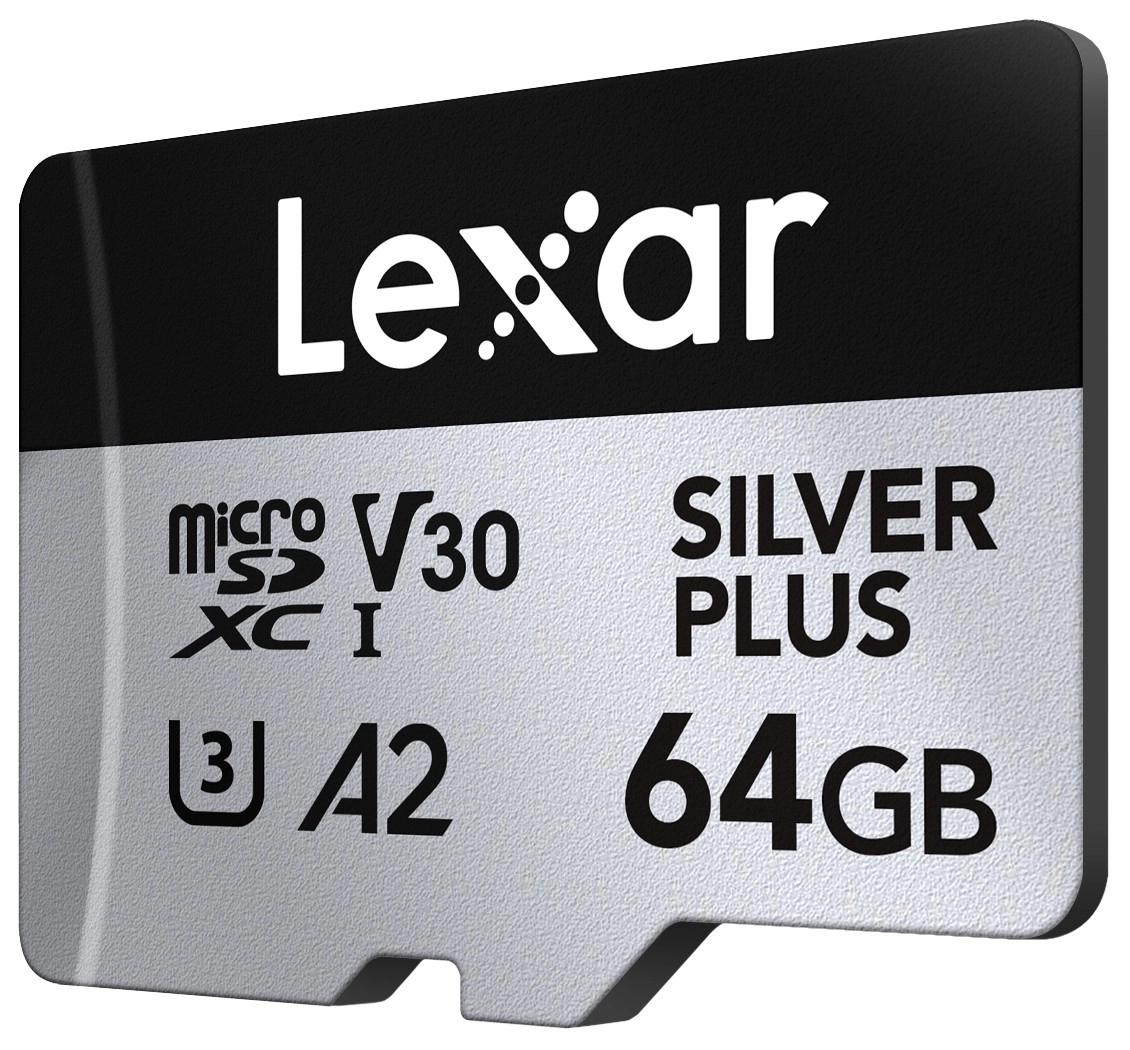 Cerchi uno storage affidabile e veloce per riprese 4K, gaming e grandi trasferimenti di dati? La microSD da 64 GB Silver Plus con velocità di lettura fino a 205 MB/s e scrittura fino a 100 MB/s gestisce raffiche rapide di scatti, video 4K/60 fps fluidi e caricamenti reattivi delle app grazie alla specifica A2.