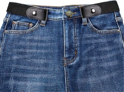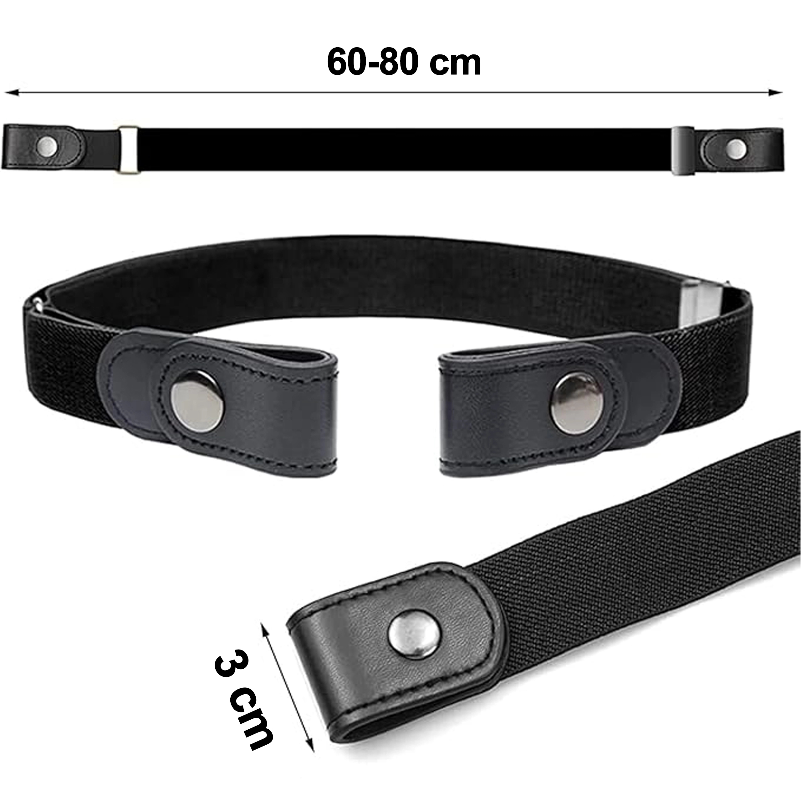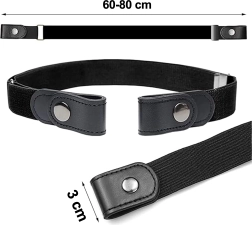 Questa cintura regolabile senza fibbia è ideale per jeans, pantaloni e shorts. Il materiale elastico assicura un adattamento perfetto alla vita e comfort sia da seduti sia in movimento, mentre i bottoni a pressione alle estremità si agganciano in modo rapido e sicuro ai passanti.