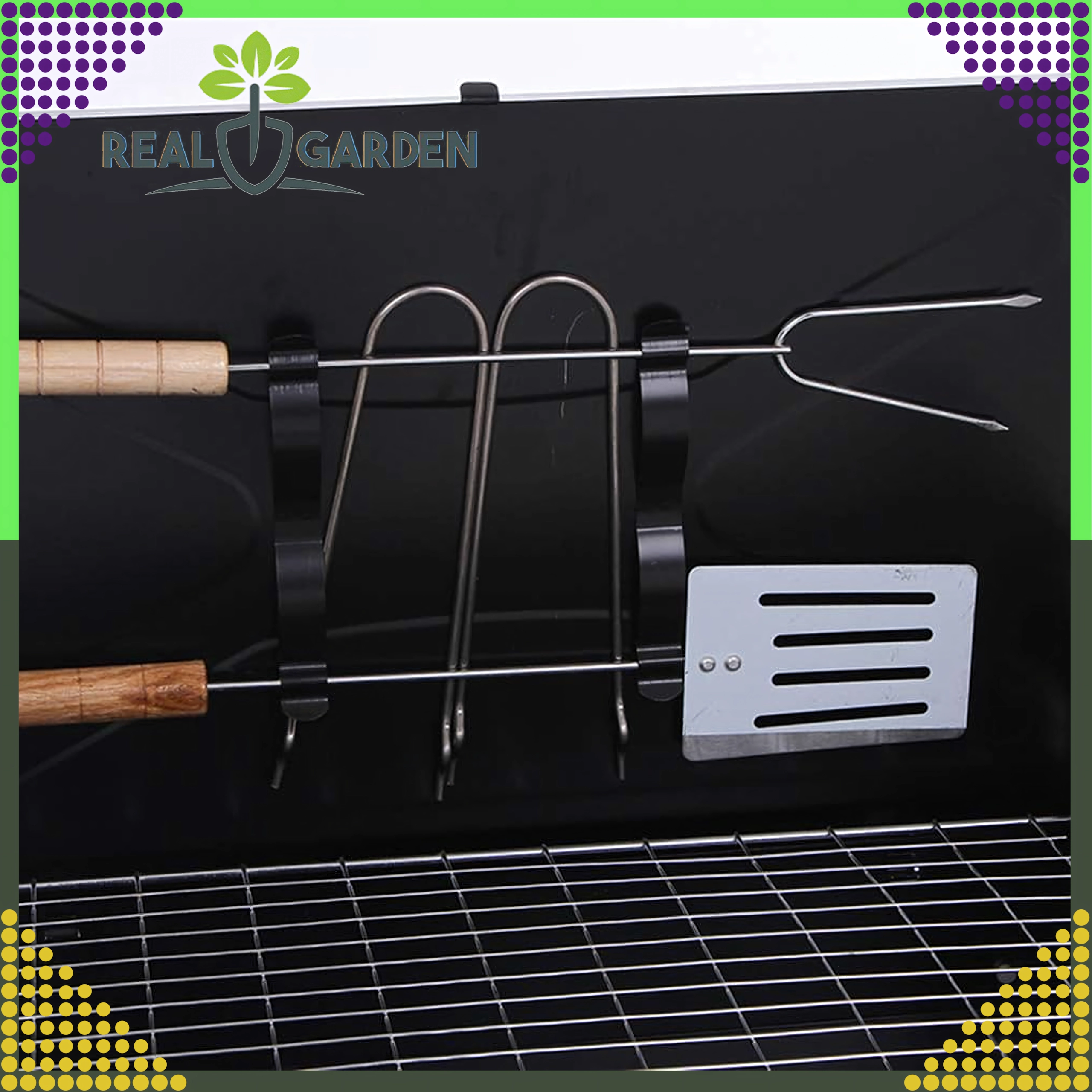 Grazie alle aperture di ventilazione la combustione del carbone è più efficiente, così i piatti si preparano più velocemente e in modo uniforme. Sui lati trovi comode impugnature per un trasporto agevole. Nella confezione ricevi inoltre accessori di base – paletta, pinza e spiedo – per iniziare a grigliare subito.