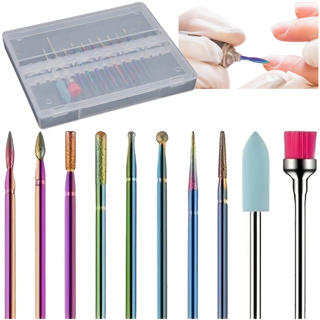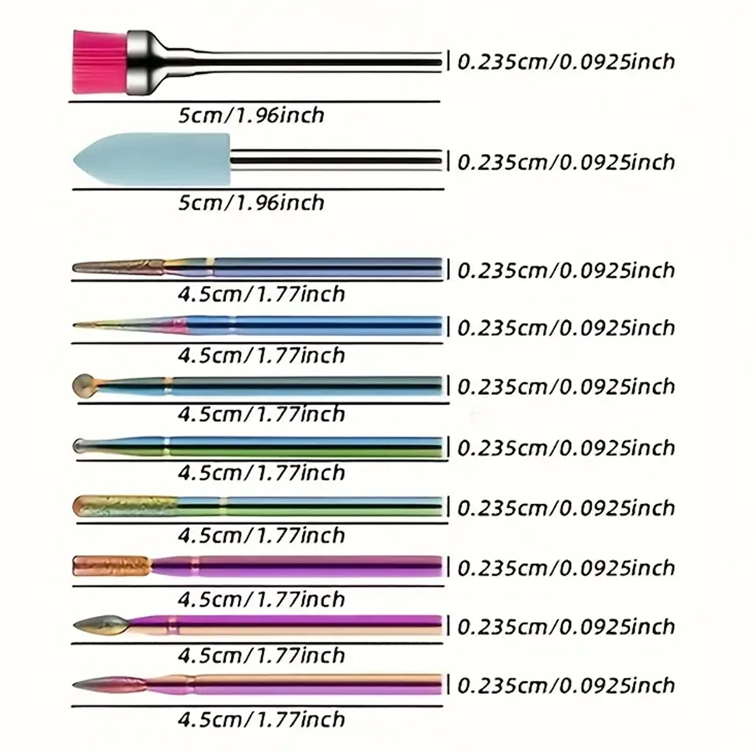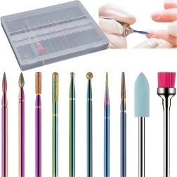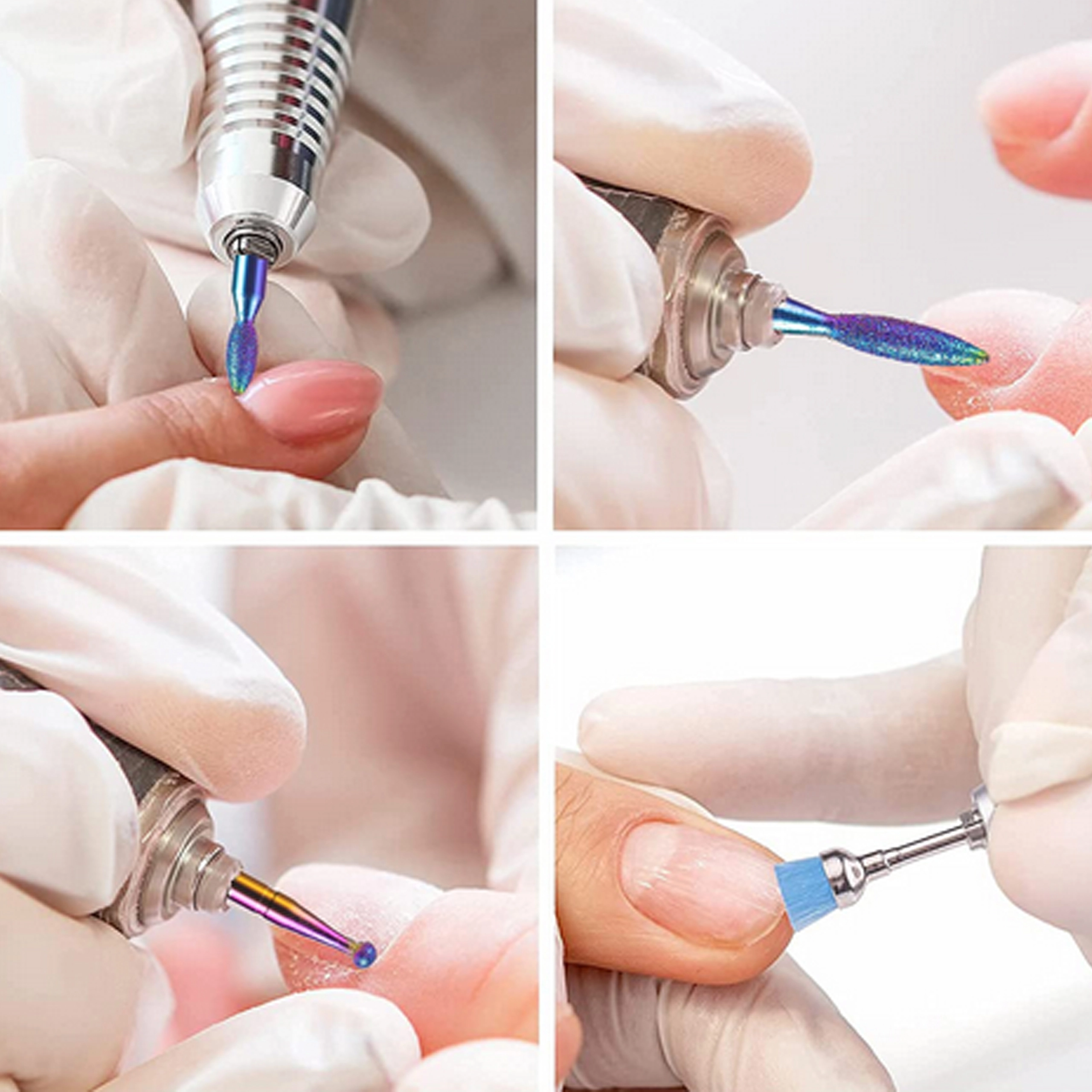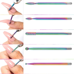 Grazie alle diverse forme (cono, cilindro, sfera, ago, ecc.) otterrai una lavorazione dettagliata della superficie dell’unghia, la rimozione del materiale vecchio e una pulizia precisa senza surriscaldamento superfluo. Il set è ideale per saloni e uso domestico ed è compatibile con le comuni frese elettriche per unghie.