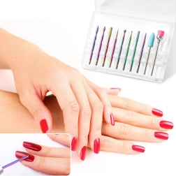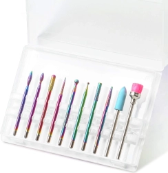 Questo set universale di 10 frese è stato progettato per un lavoro preciso e confortevole durante manicure e pedicure. Combina inserti diamantati e in ceramica per una rimozione delicata della cuticola indurita, limatura e modellatura, pulizia del contorno unghia e riduzione degli strati induriti di gel o acrilico.