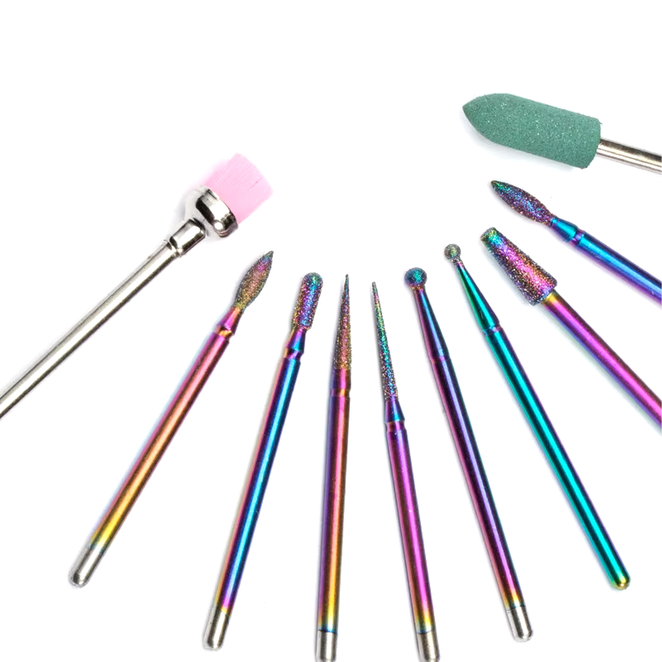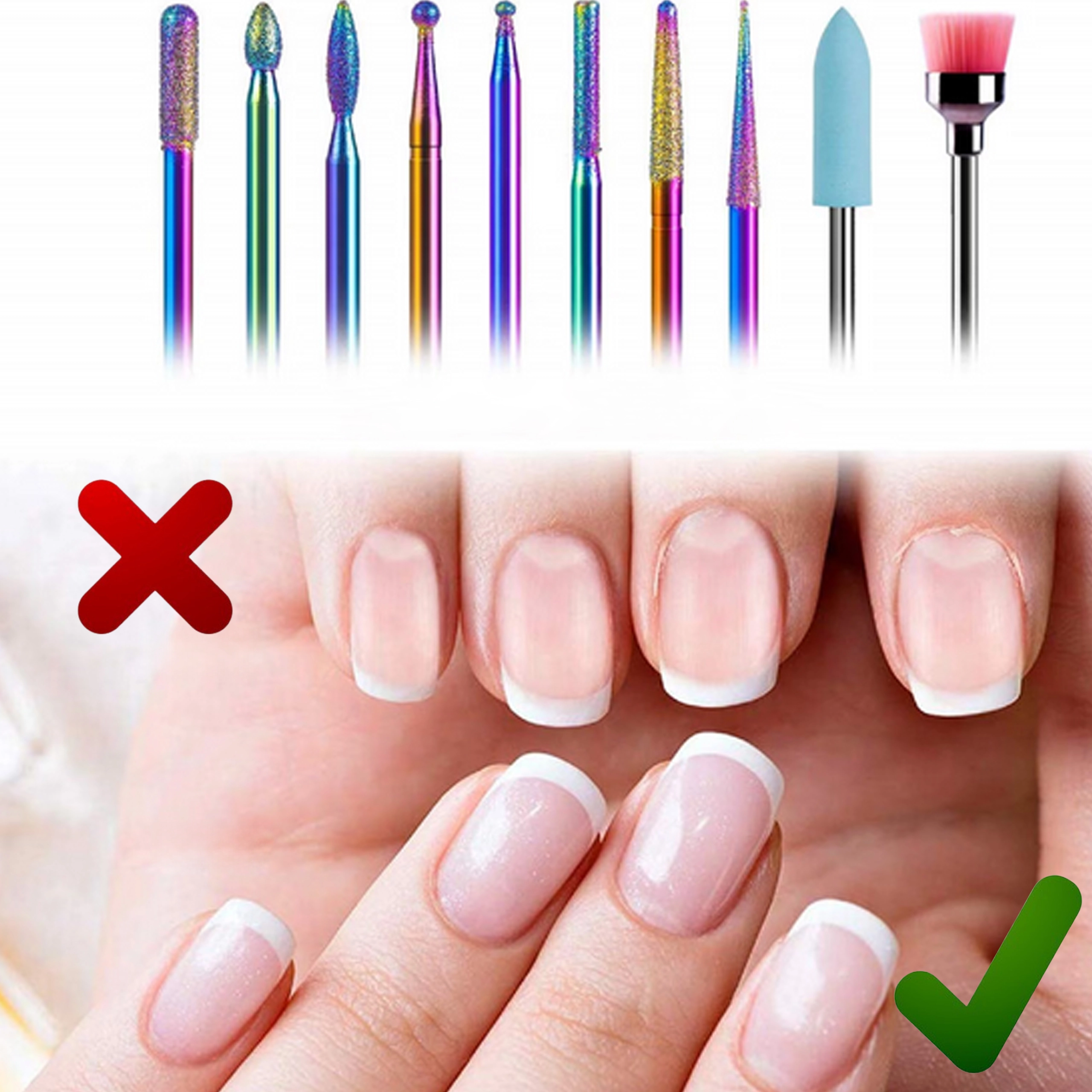 Bit diamantati per lavori delicati nell’area delle cuticole, bit in ceramica per una rimozione rapida e fluida di gel o acrilico con minore surriscaldamento.