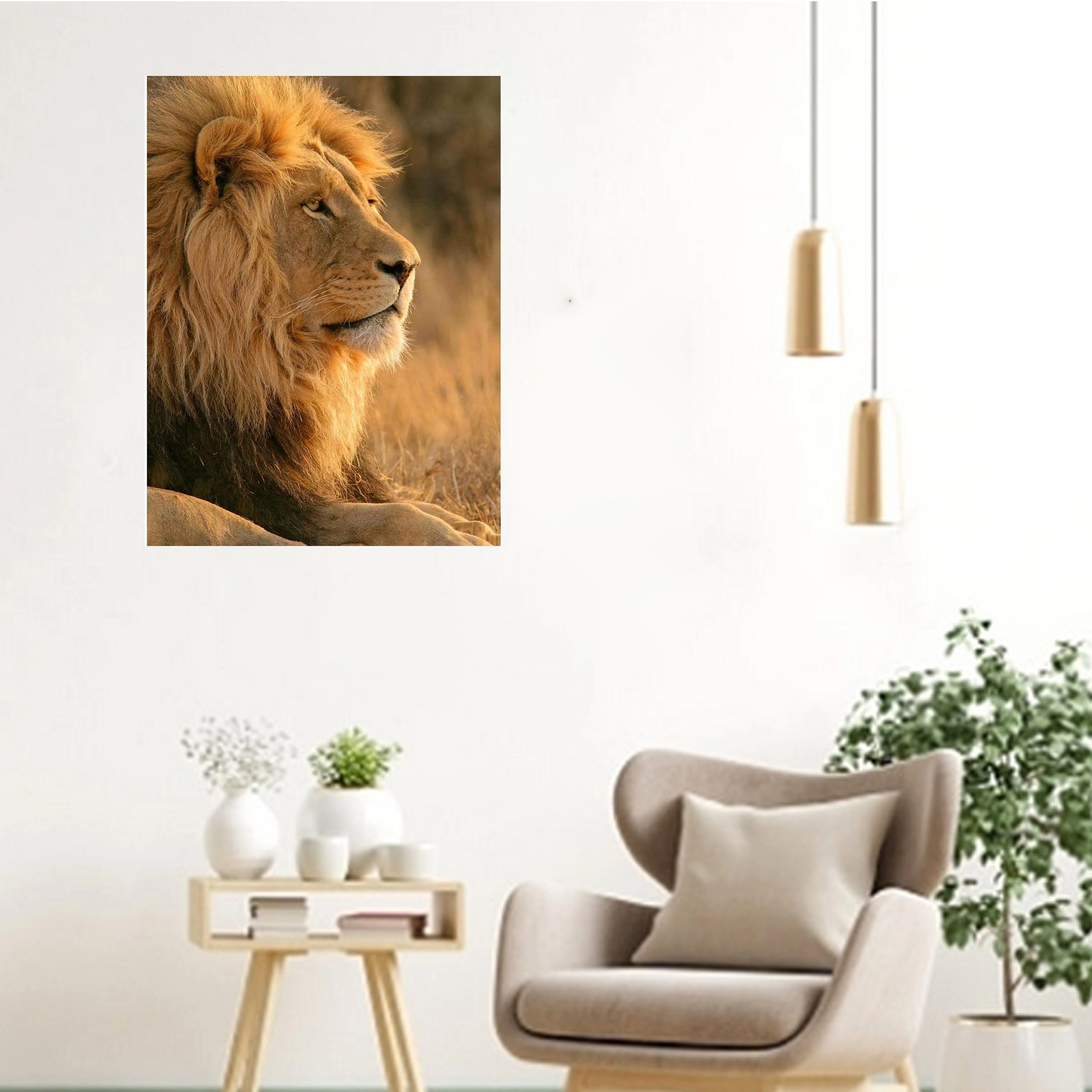 L’elegante motivo del leone sulla tela 40 × 50 cm è teso su un telaio in legno, così il quadro finito è facile da esporre.