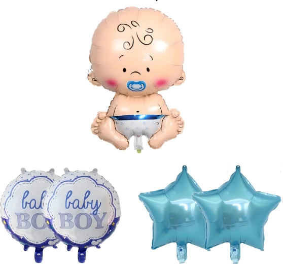 Elegante set di palloncini per bambino con motivo bebè, stelline e scritta Baby Boy. Ideale come decorazione per baby shower, benvenuto al neonato, servizi fotografici e decorazione della cameretta.