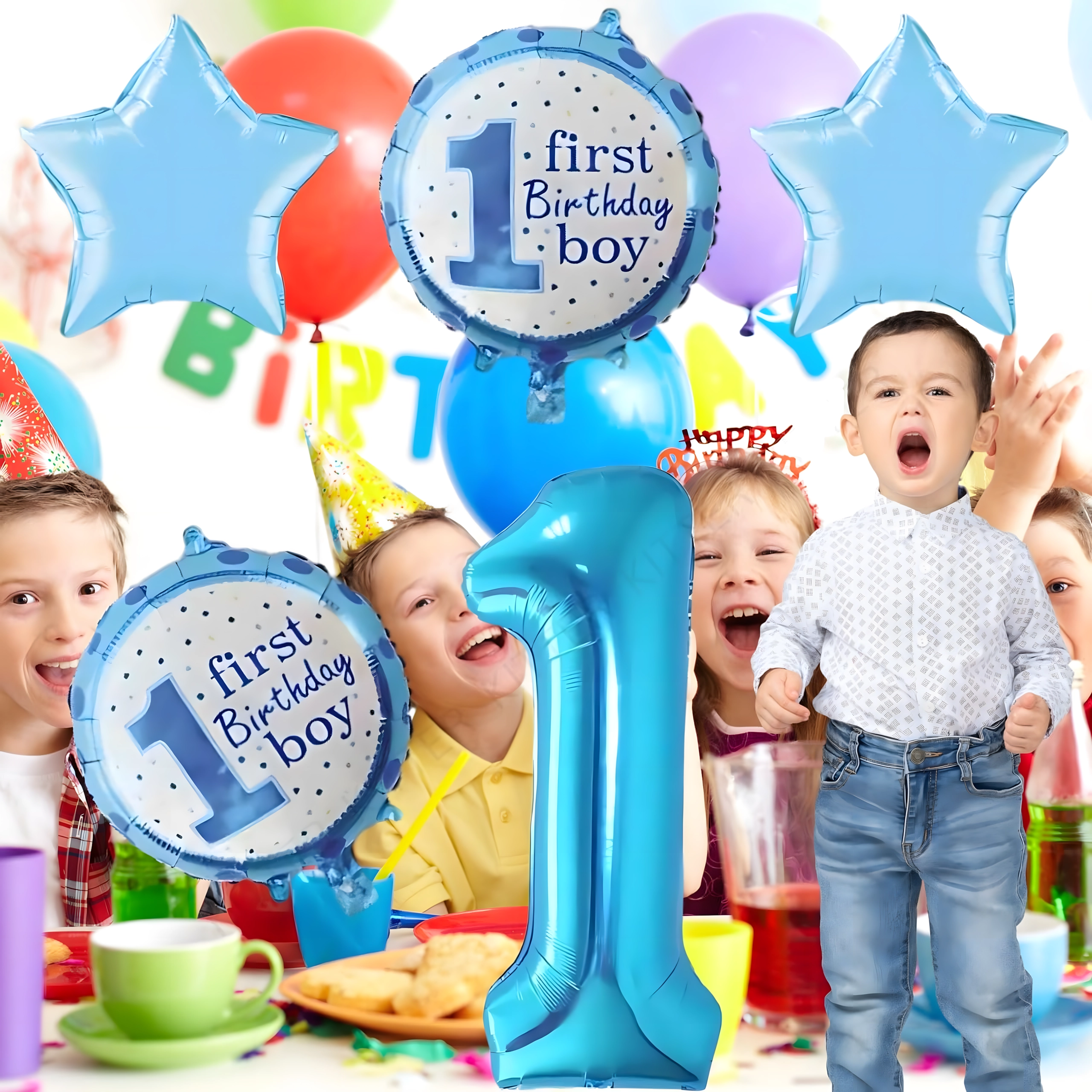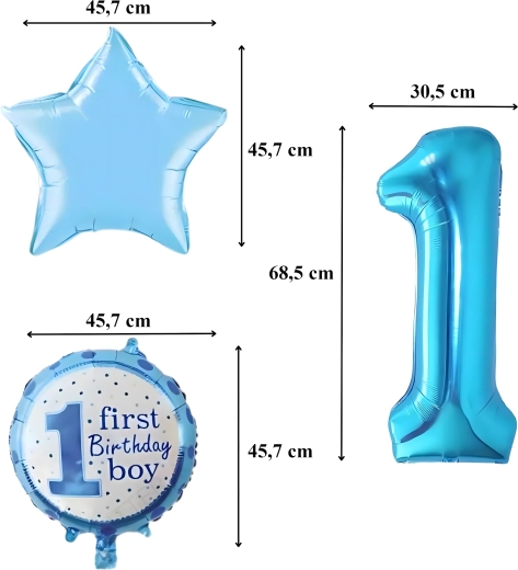 Crea un'atmosfera magica per la prima festa! Questo set di palloncini per bambino combina il numero 1, stelline e la scritta First Birthday Boy, risultando perfetto per la festa di compleanno, l'angolo foto e per decorare la cameretta.
