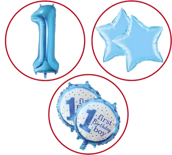 I palloncini possono essere gonfiati ad aria o con elio (a seconda del tipo). Colori e motivi sono progettati specificamente per il primo compleanno di un bambino.