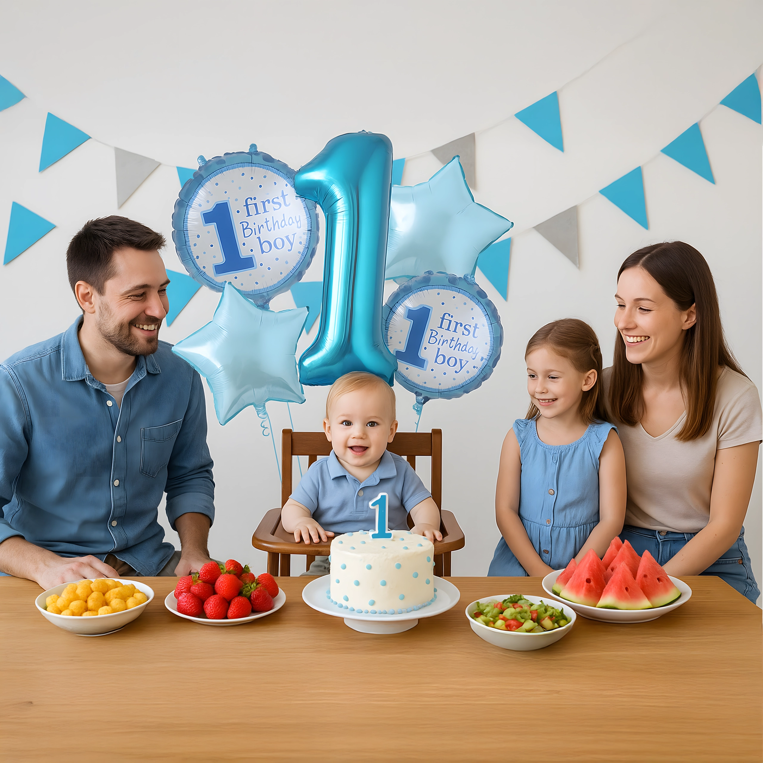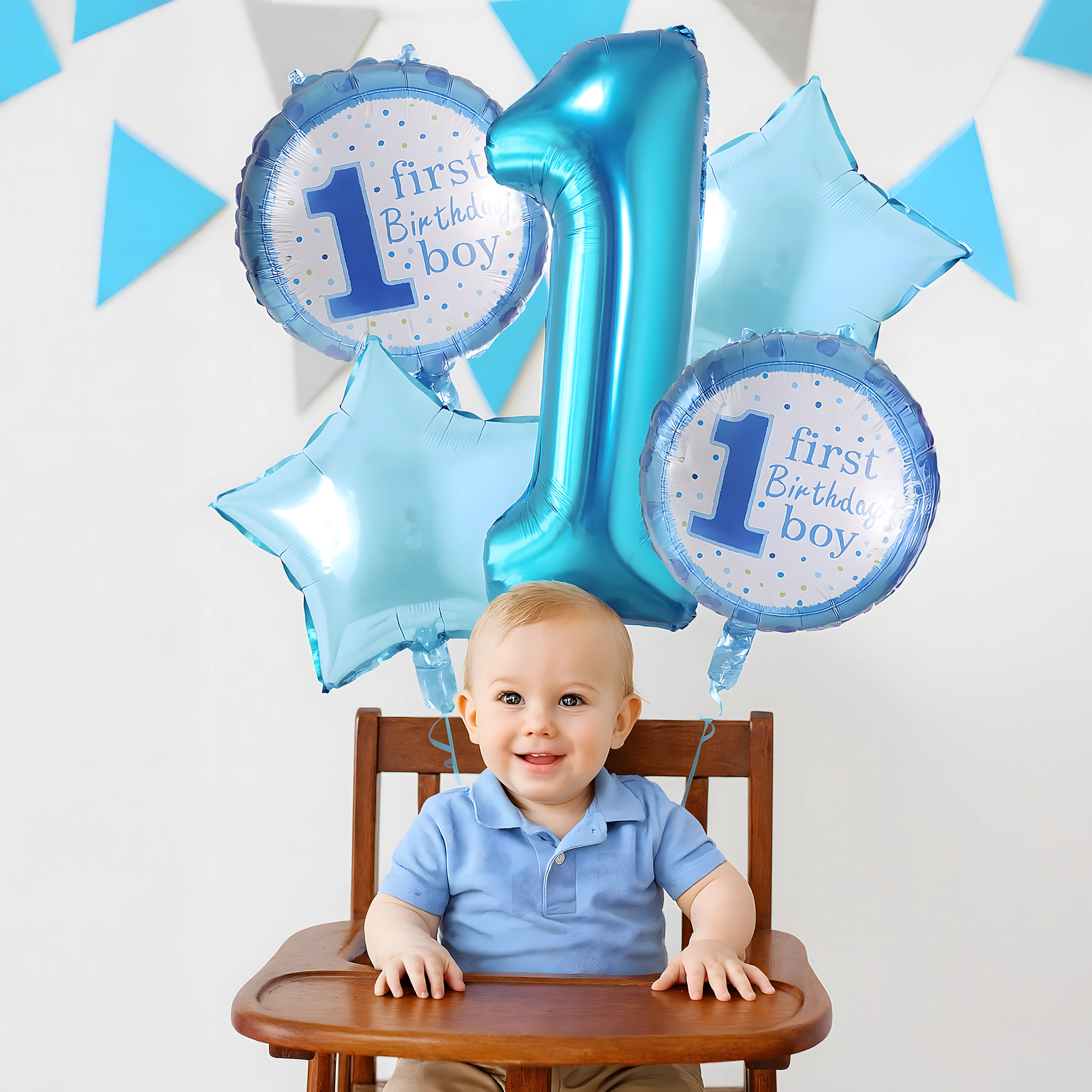 - Numero 1, stelline, scritta "First Birthday Boy"