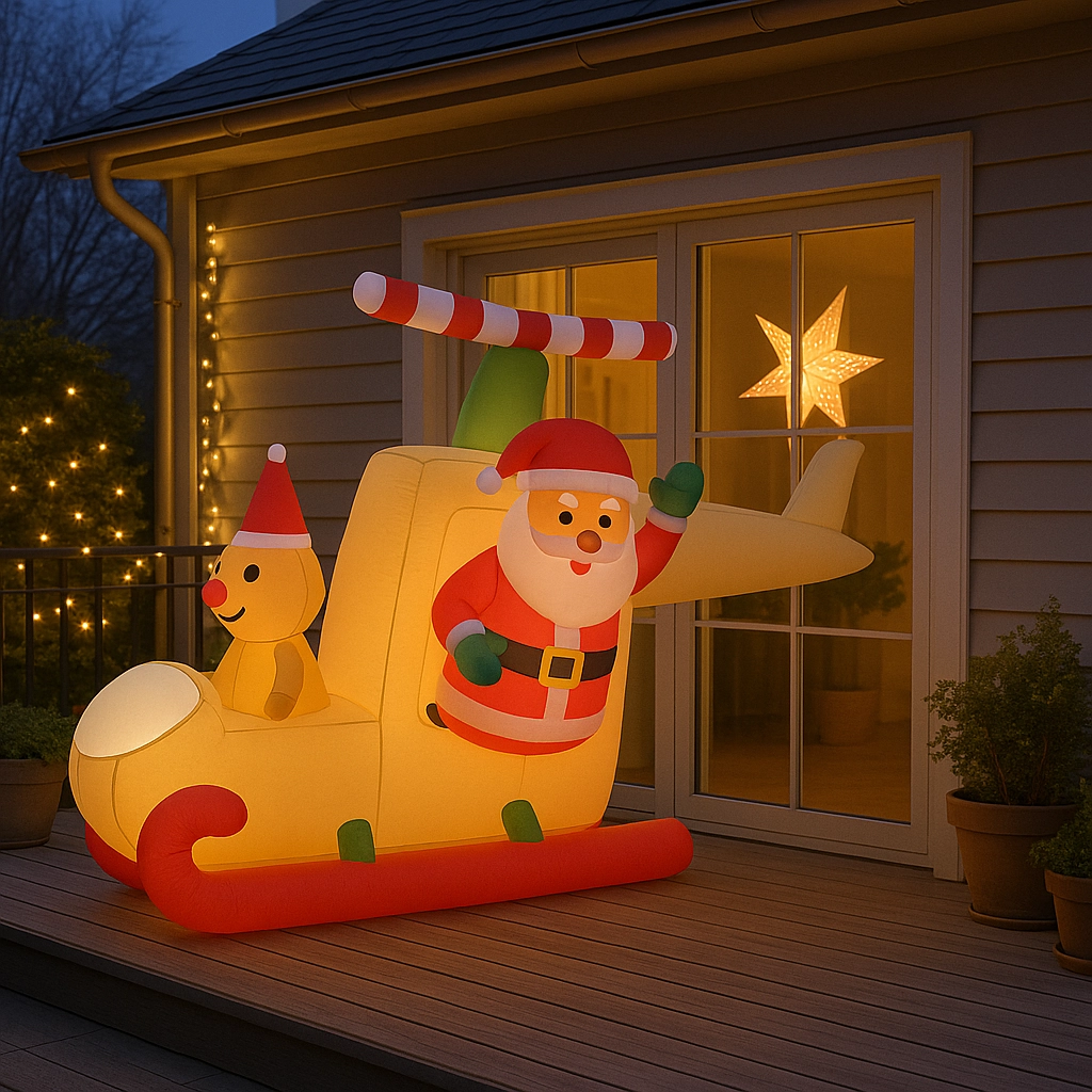 Babbo Natale gonfiabile sulla slitta alto 160 cm porta nella tua giardino una magica atmosfera natalizia. Grazie ai LED integrati illumina con una piacevole luce calda e il gonfiaggio automatico garantisce un’installazione rapida e semplice. Il materiale resistente e impermeabile assicura lunga durata e gioia per molte stagioni.