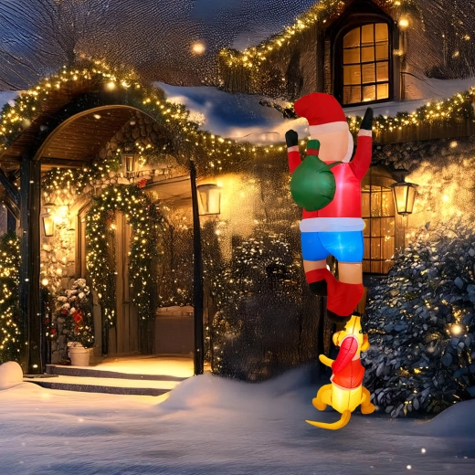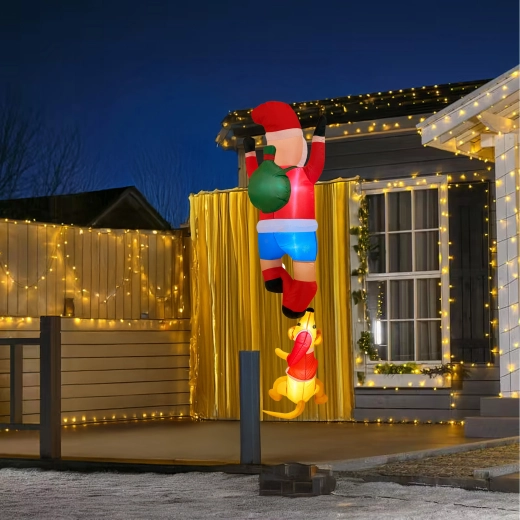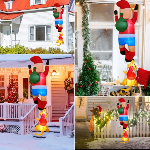 Babbo Natale gonfiabile con renna 1,8 m è una decorazione natalizia originale e divertente che crea un'atmosfera magica in casa e in giardino. Grazie all'illuminazione LED integrata e al design ingegnoso, attira l'attenzione e strappa un sorriso a bambini e adulti. È realizzata in tessuto di poliestere resistente, adatto per l'uso interno ed esterno.