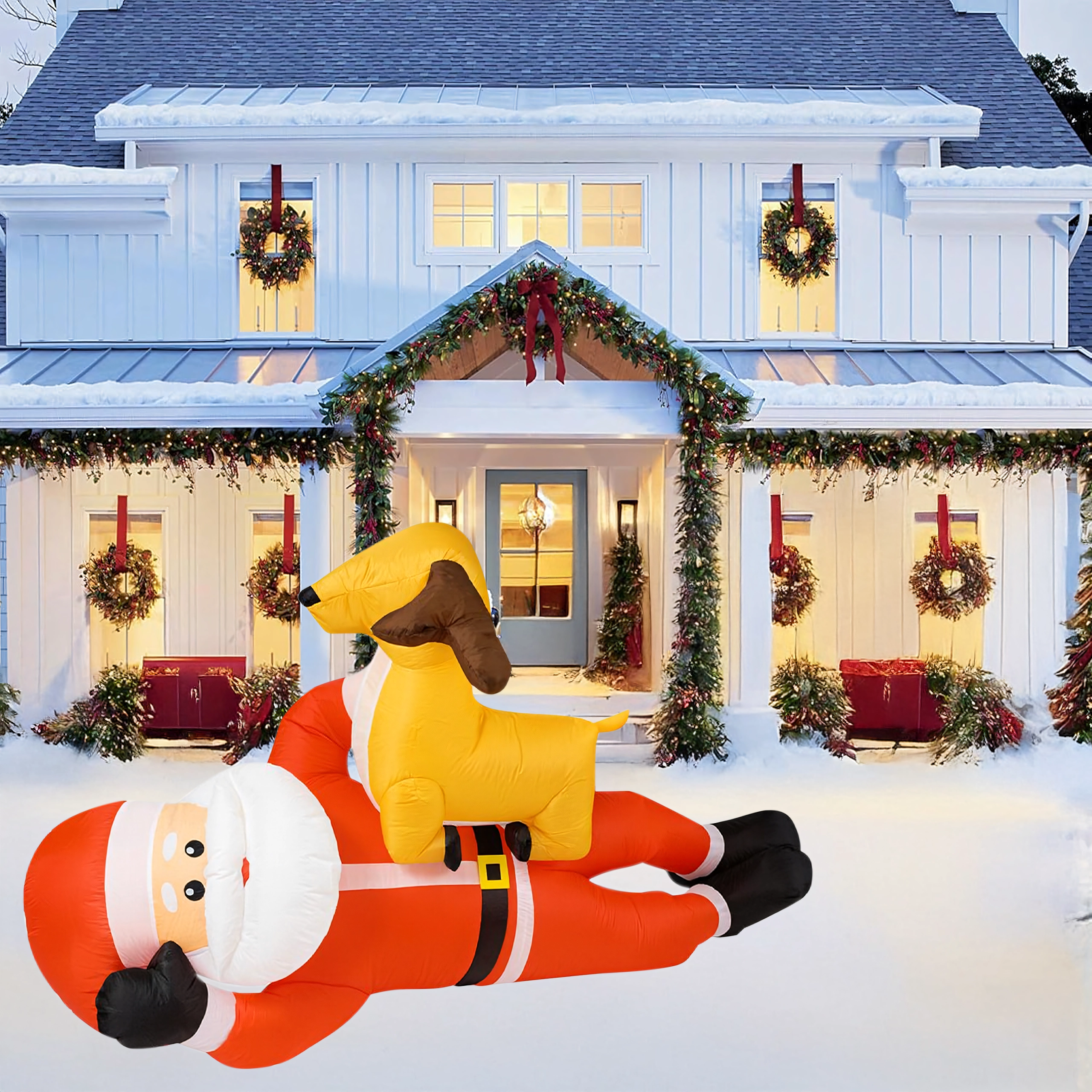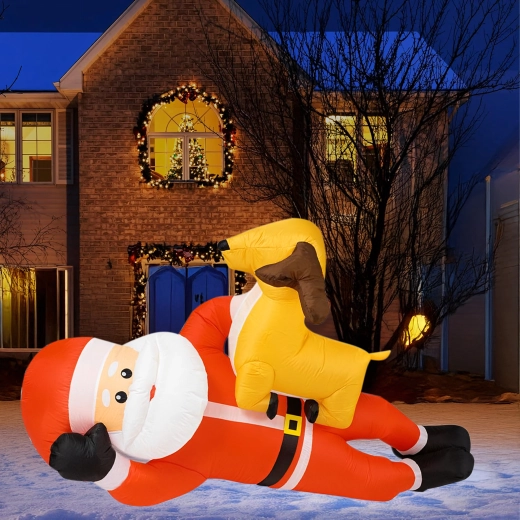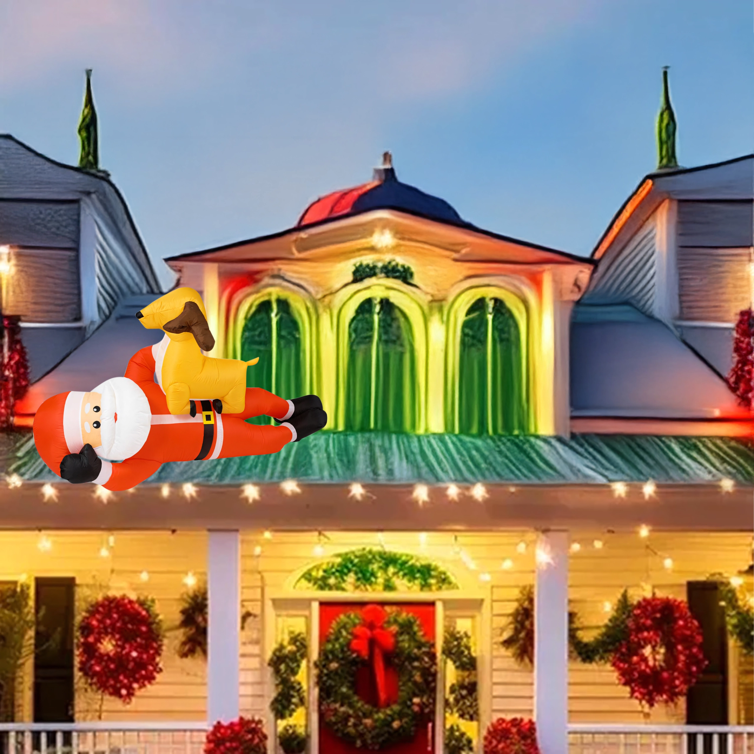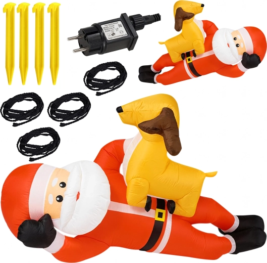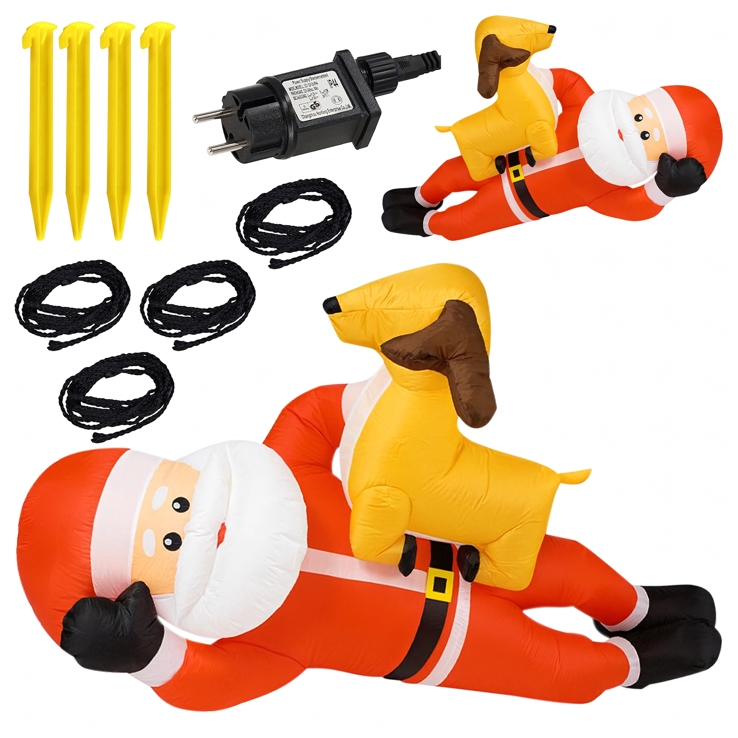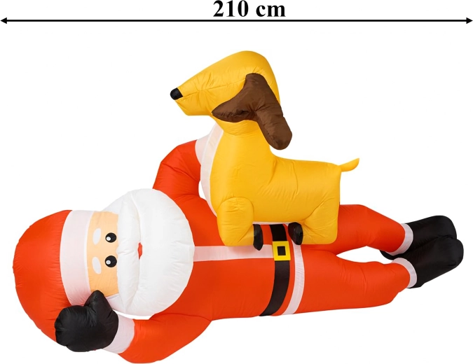 La decorazione natalizia gonfiabile a forma di BABBO NATALE con renna, alta 2,1 m, dona subito un tocco festivo alla tua casa. Le lampadine LED integrate garantiscono un’illuminazione scenografica dopo il tramonto e il soffiatore automatico assicura un gonfiaggio rapido e senza sforzo.