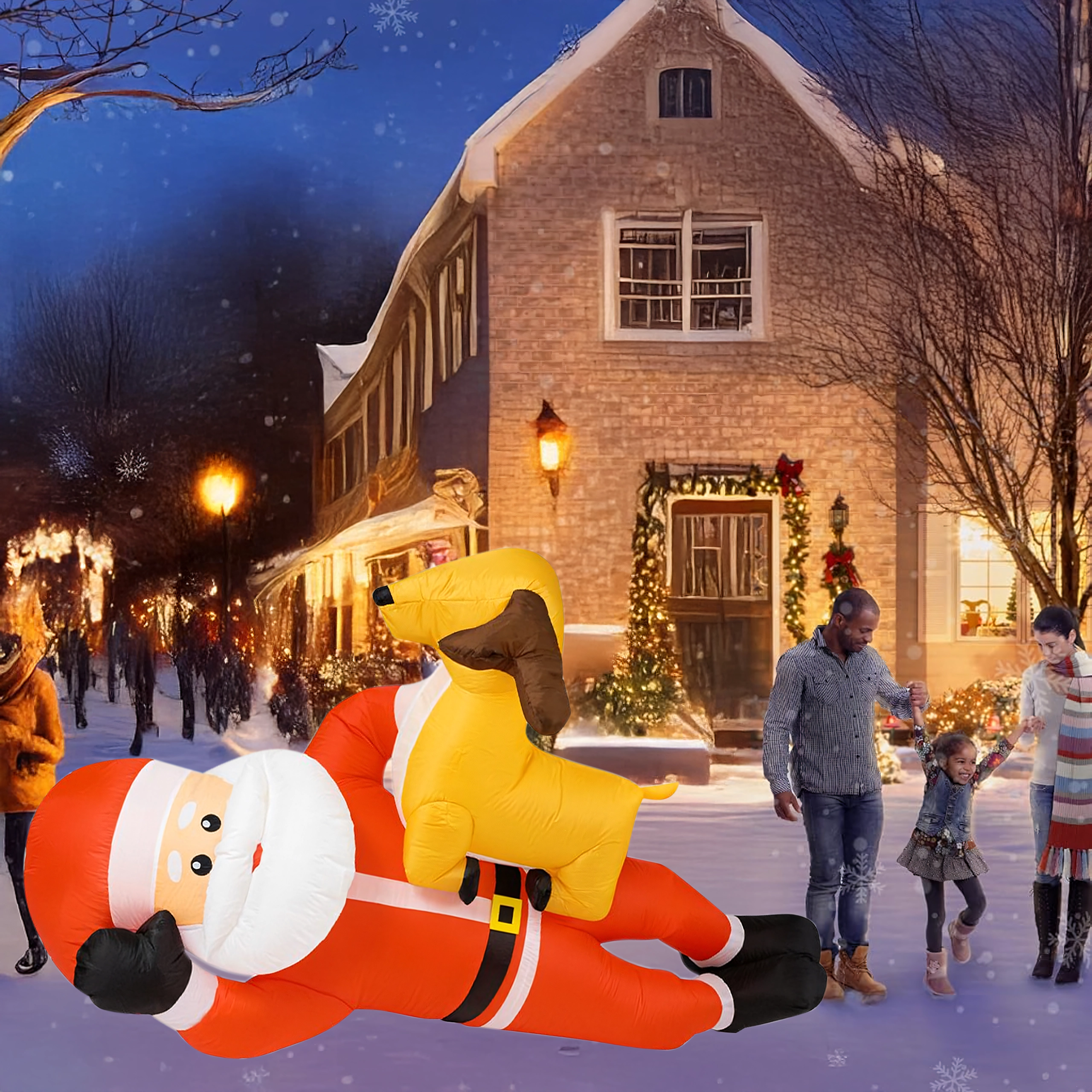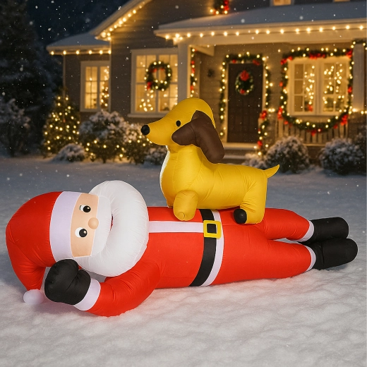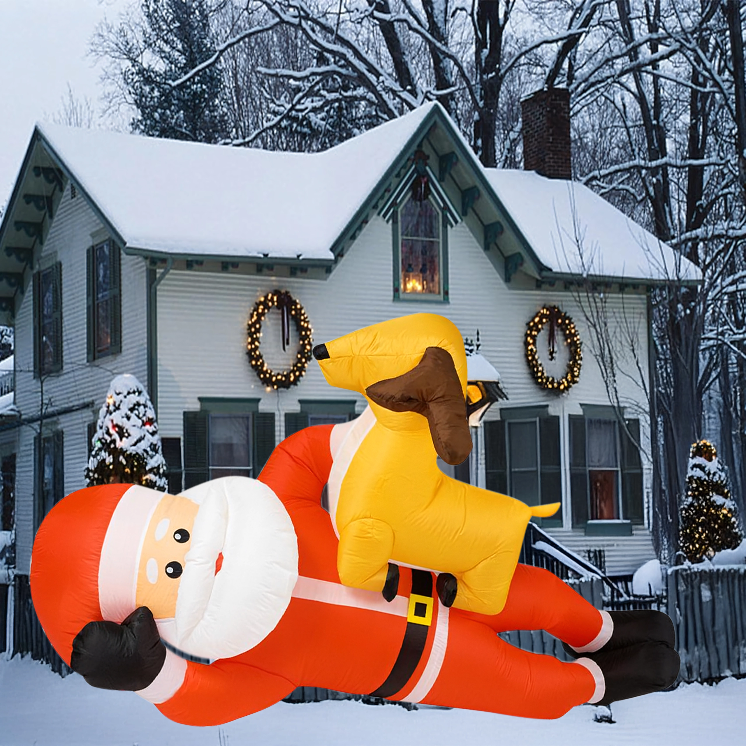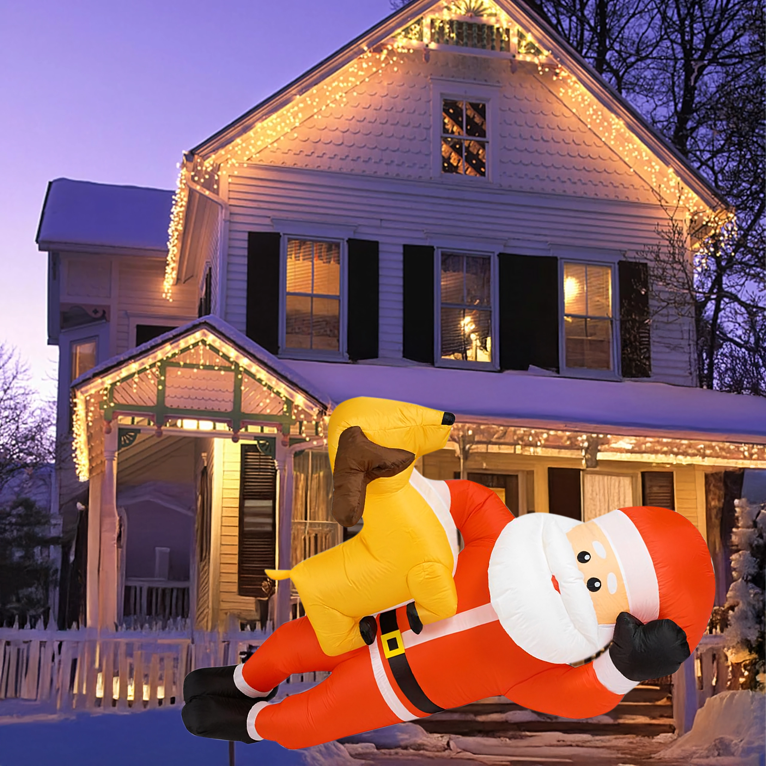 La decorazione natalizia gonfiabile a forma di BABBO NATALE con renna, alta 2,1 m, dona subito un tocco festivo alla tua casa. Le lampadine LED integrate garantiscono un’illuminazione scenografica dopo il tramonto e il soffiatore automatico assicura un gonfiaggio rapido e senza sforzo.
