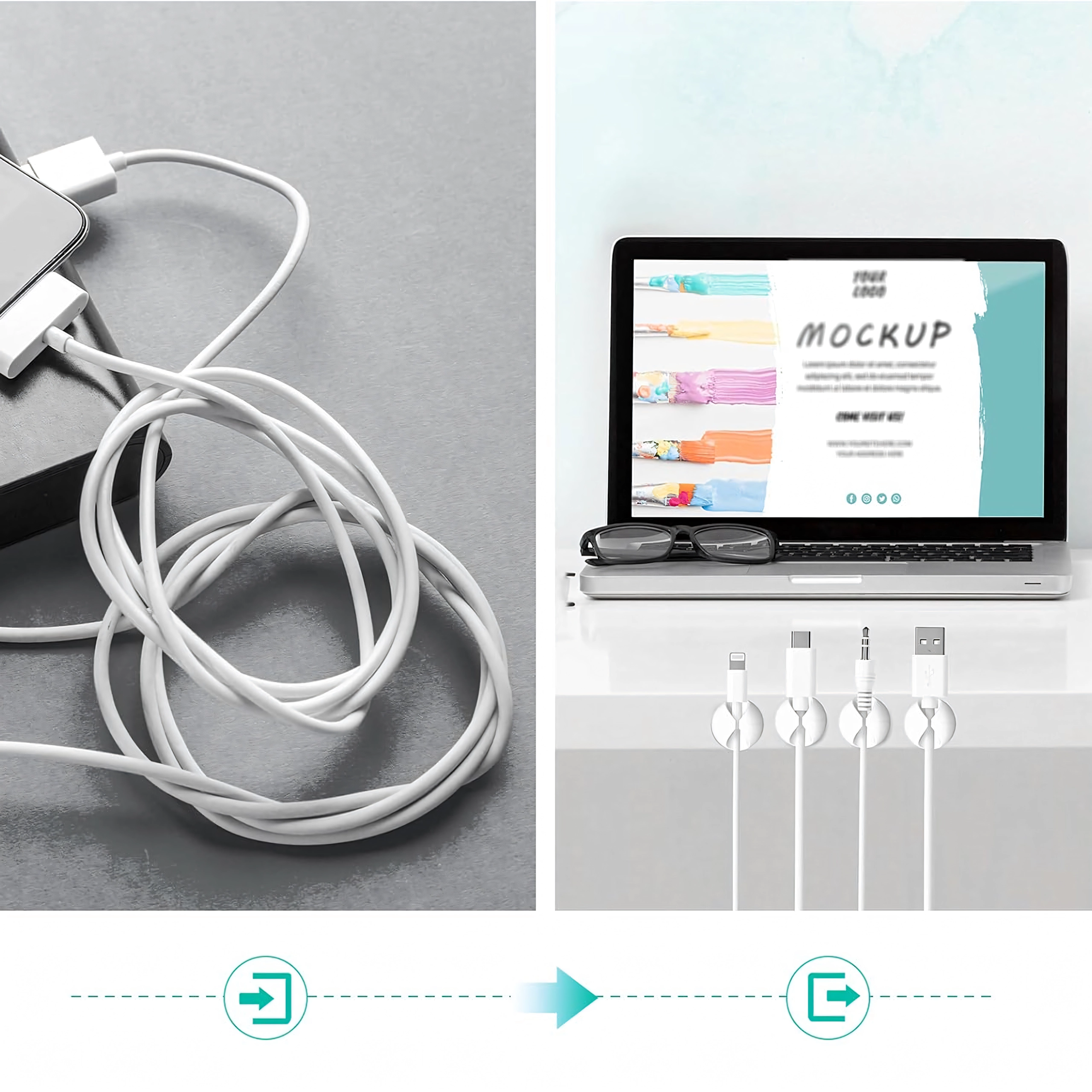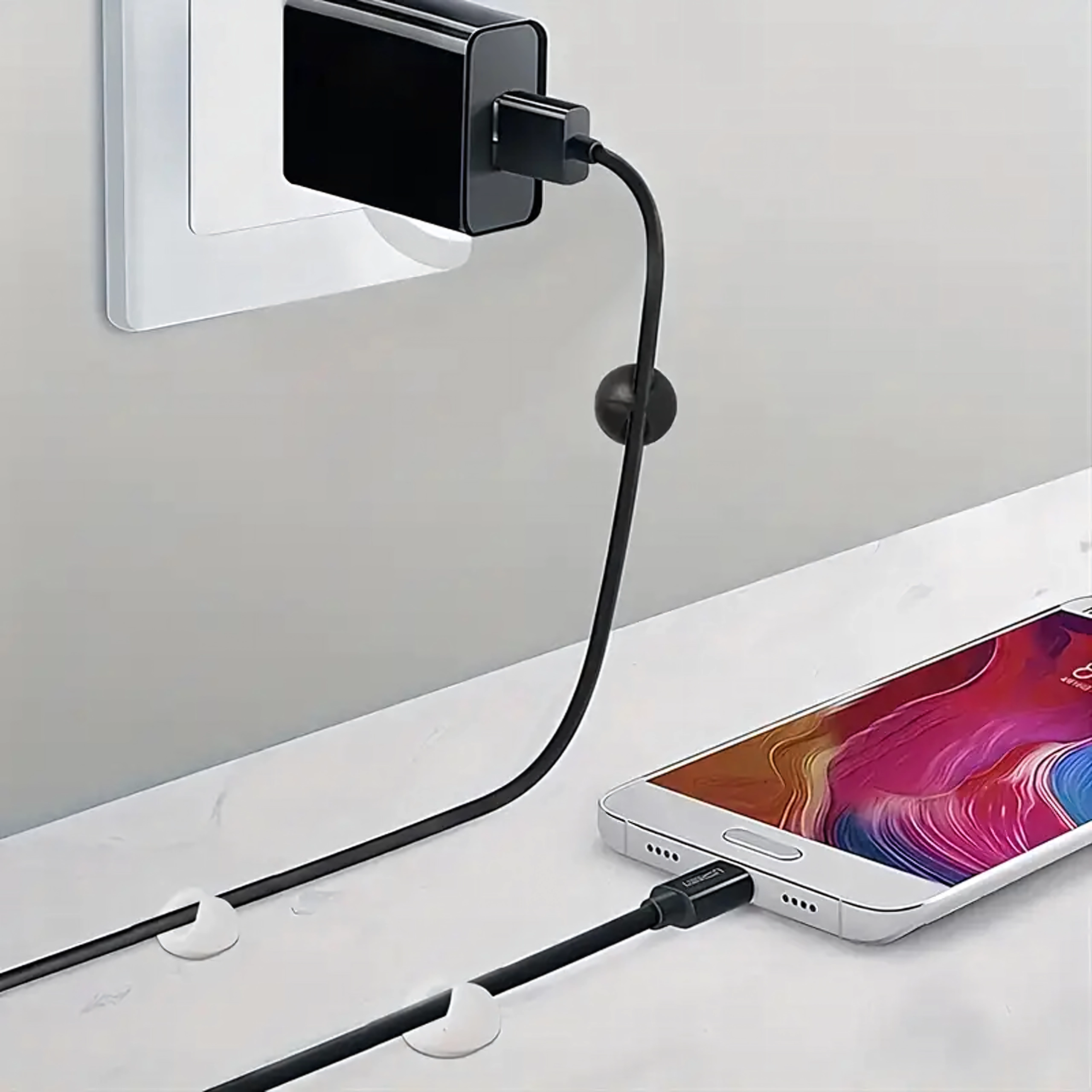 Utili per cavi di ricarica e dati, auricolari e anche per piccoli oggetti come penne o decorazioni. L’installazione semplice, senza attrezzi, fa risparmiare tempo e mantiene uno spazio pulito e ordinato.