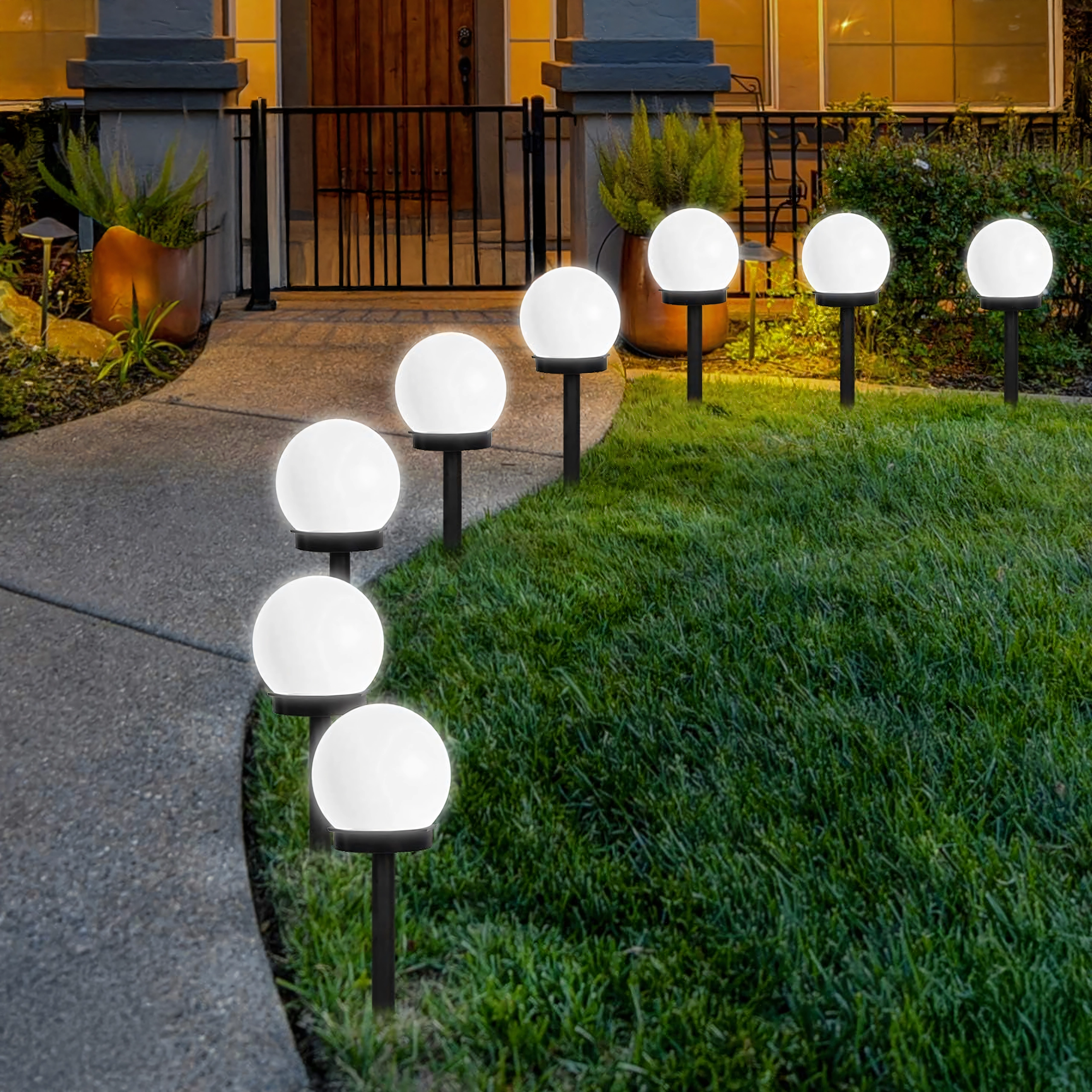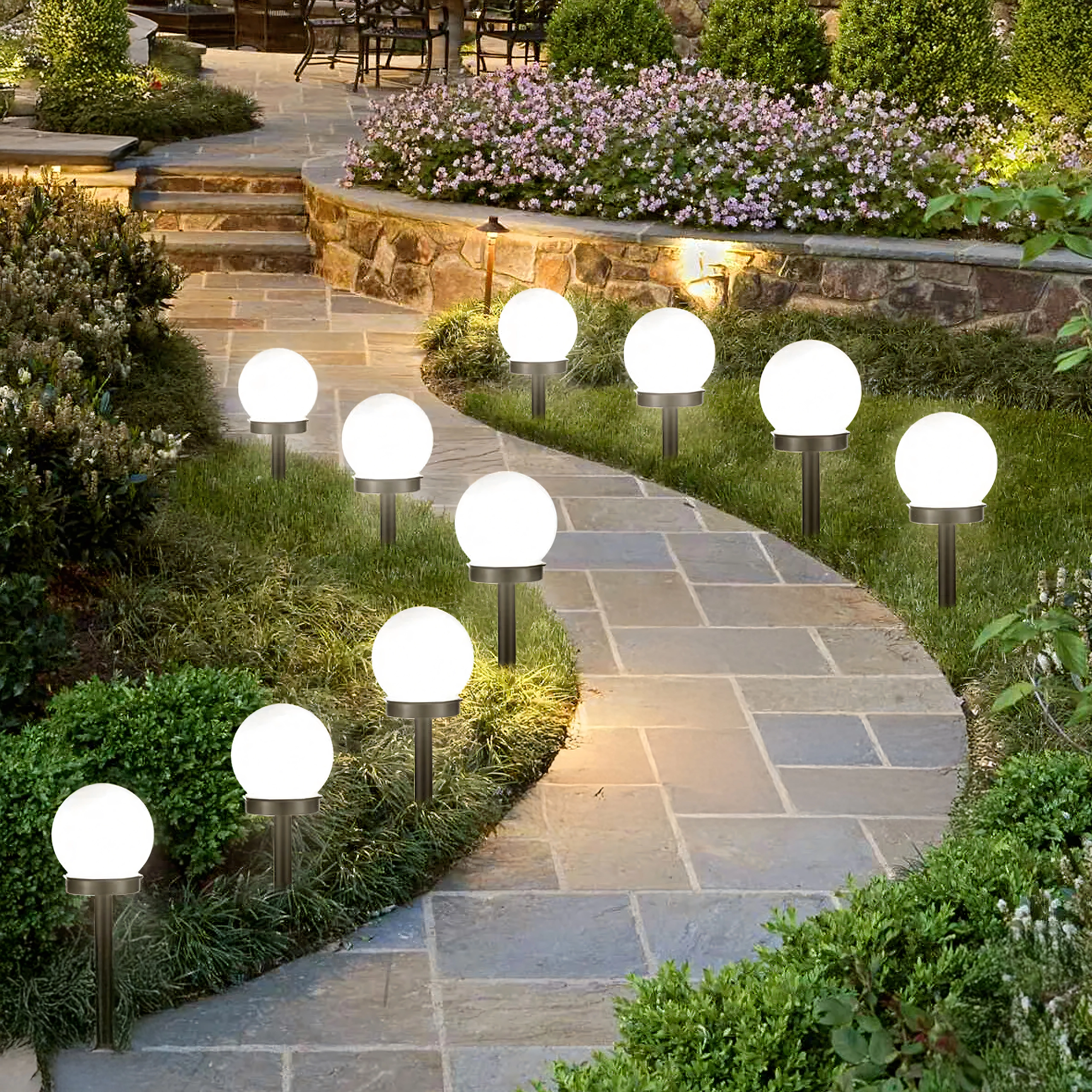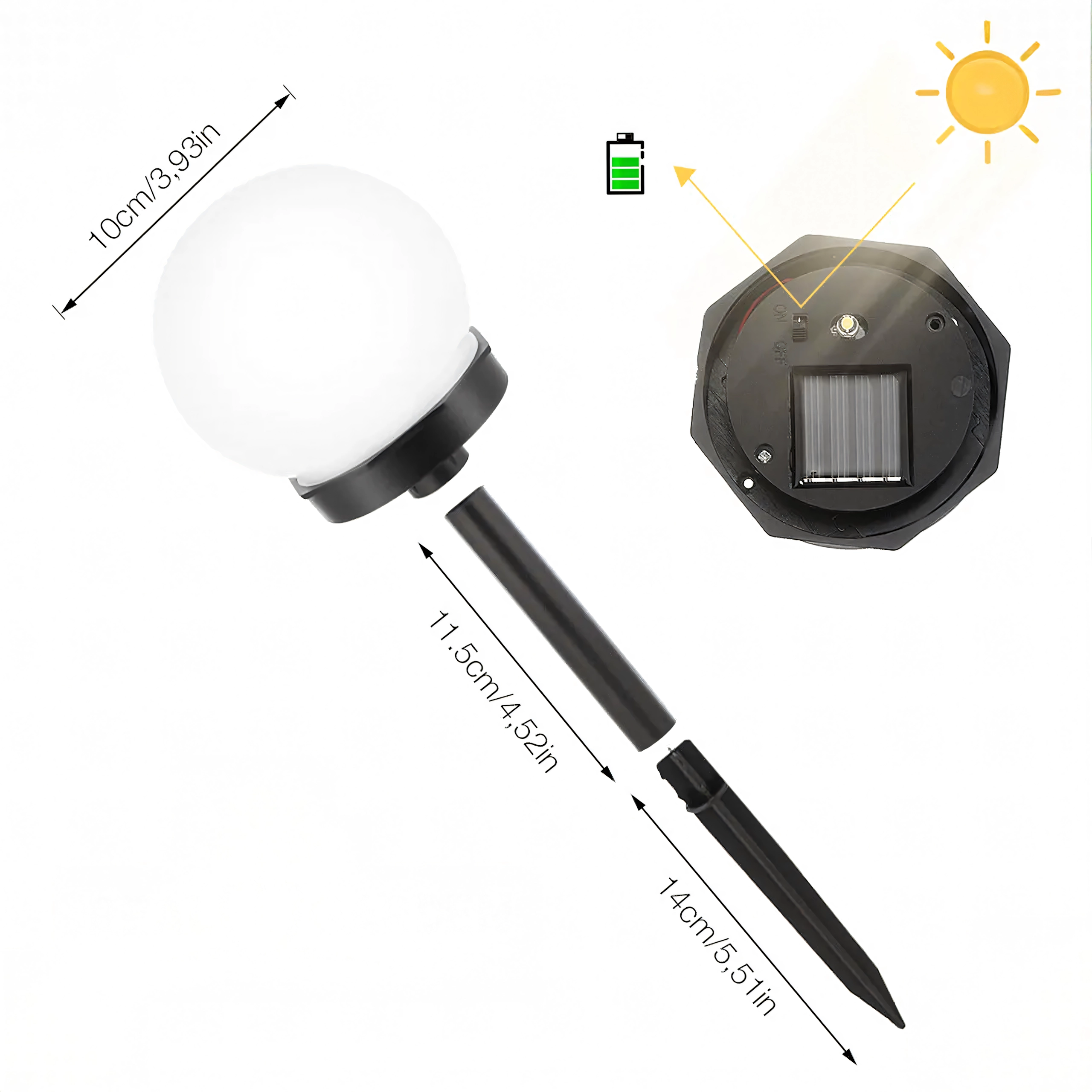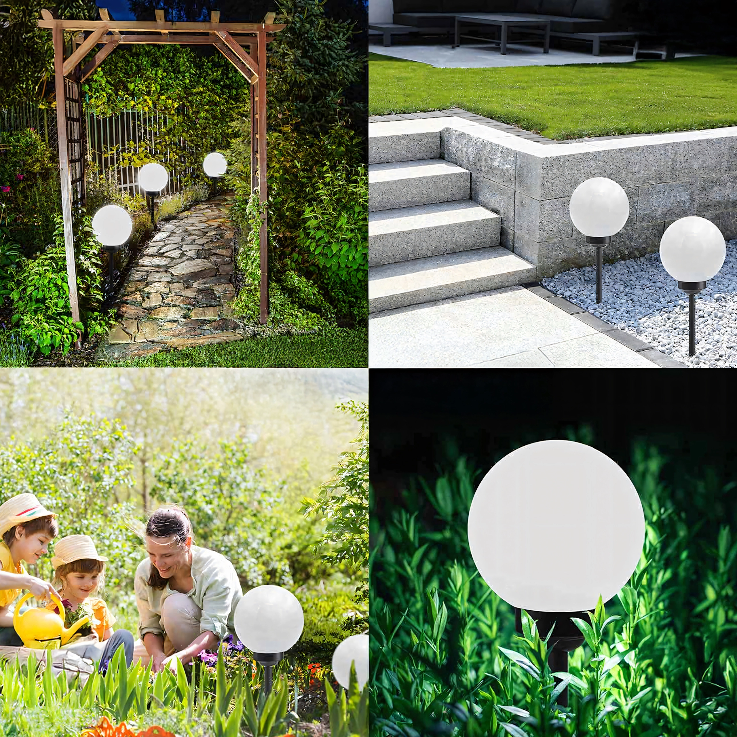 L'installazione richiede pochi istanti: basta inserirle nel terreno o in un vaso e impostare l'interruttore ON/OFF. Il diffusore sferico garantisce un'illuminazione uniforme a 360° di vialetti, aiuole e aree di seduta.