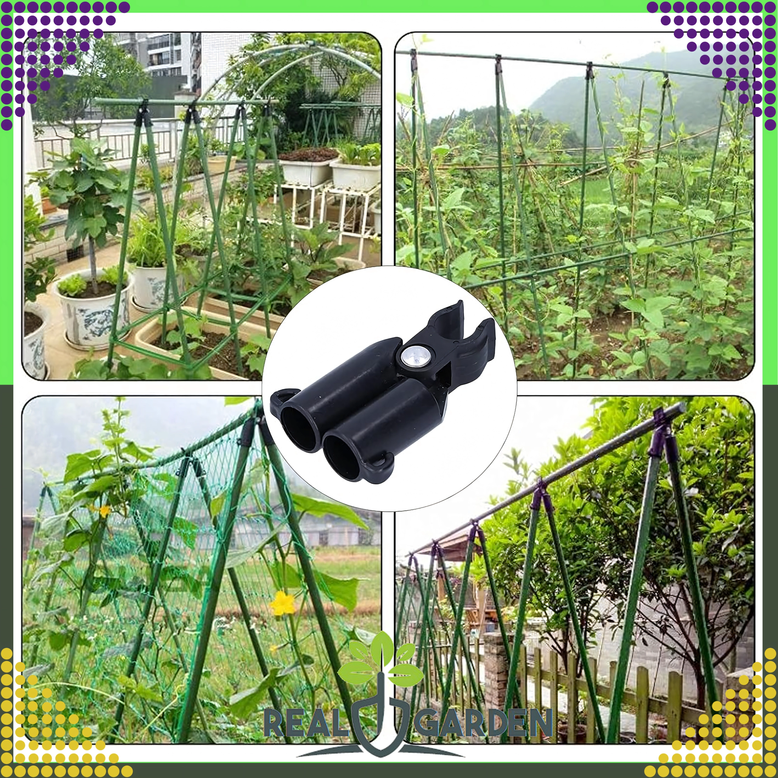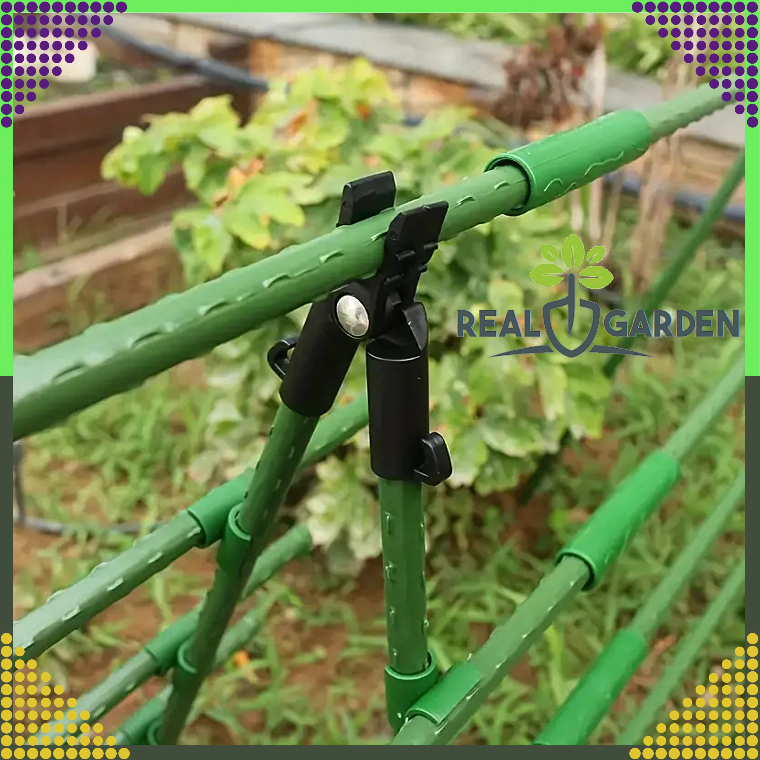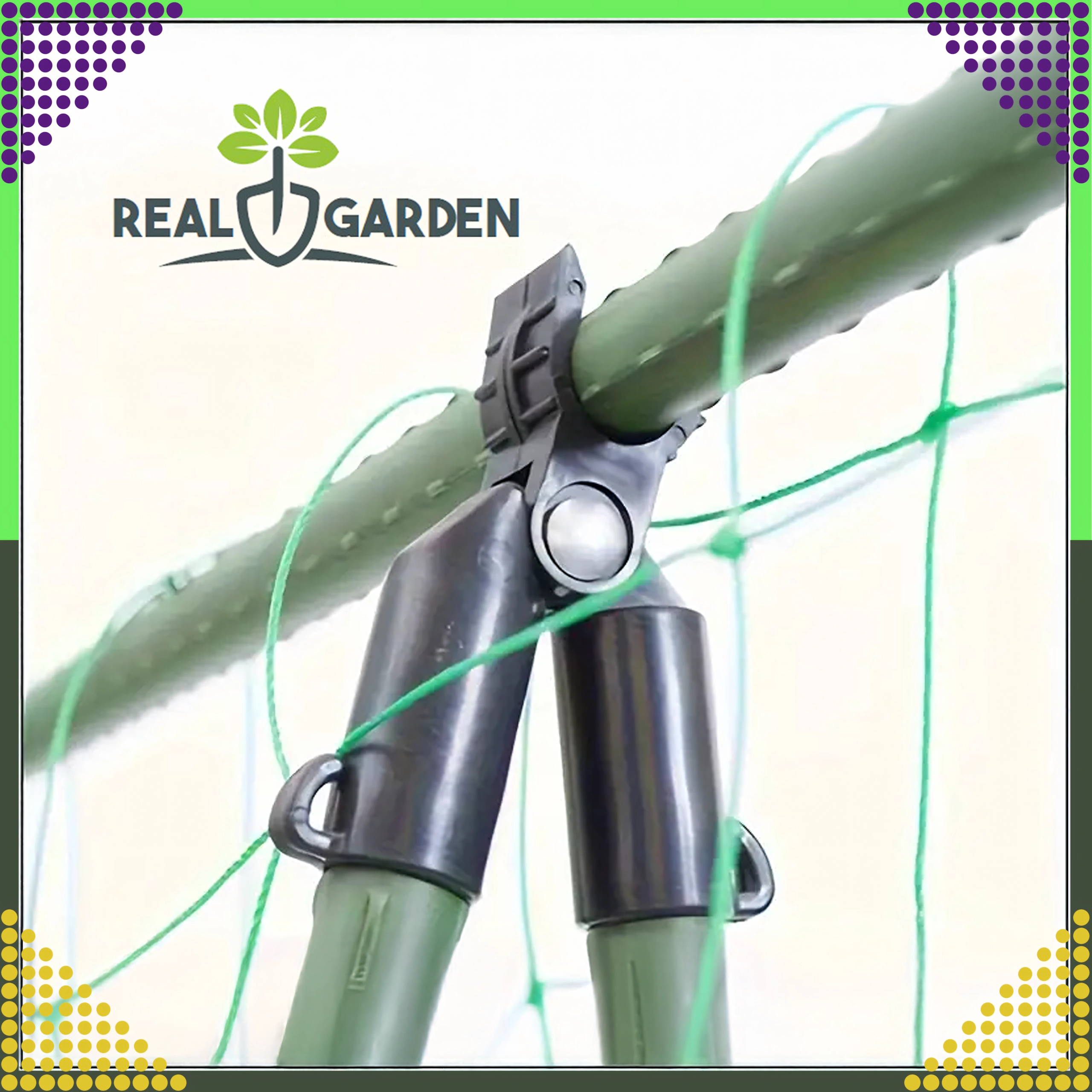 L’installazione è rapida e intuitiva: basta farlo scorrere sui pali e creare un triangolo di vertice o una trave trasversale. Questo giunto a T con snodo è perfetto per serre, tunnel e aiuole, e aiuta a mantenere le piante nella giusta direzione di crescita.