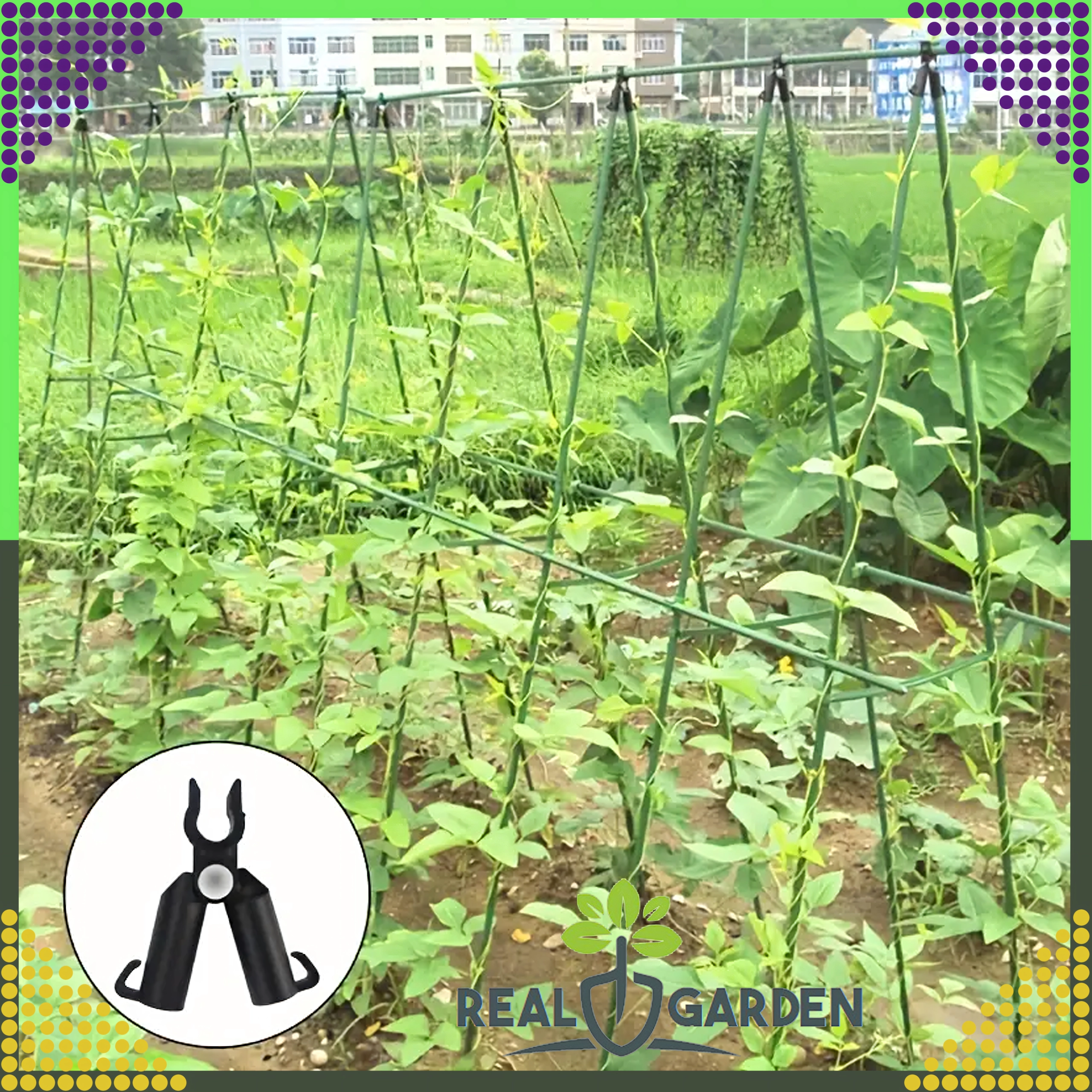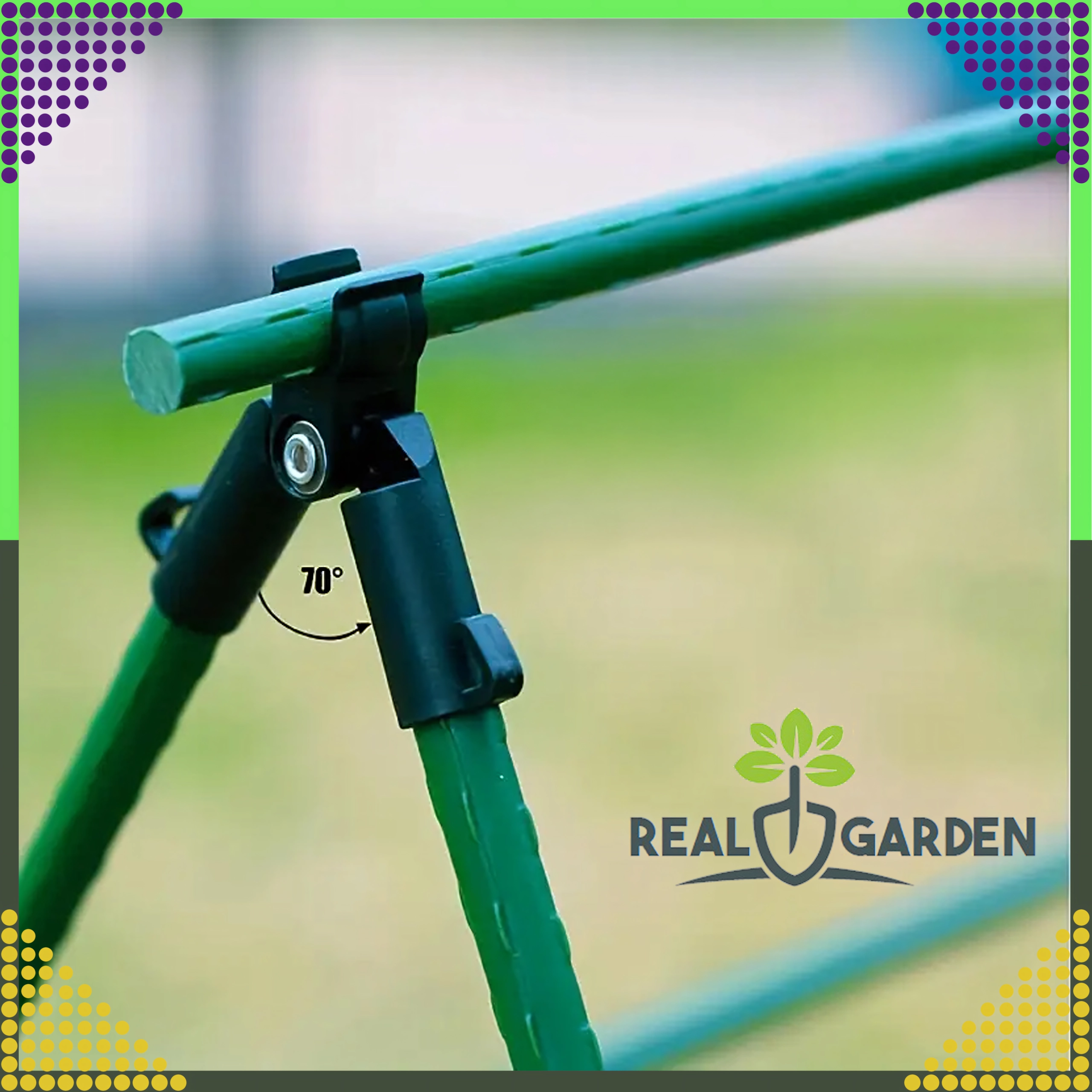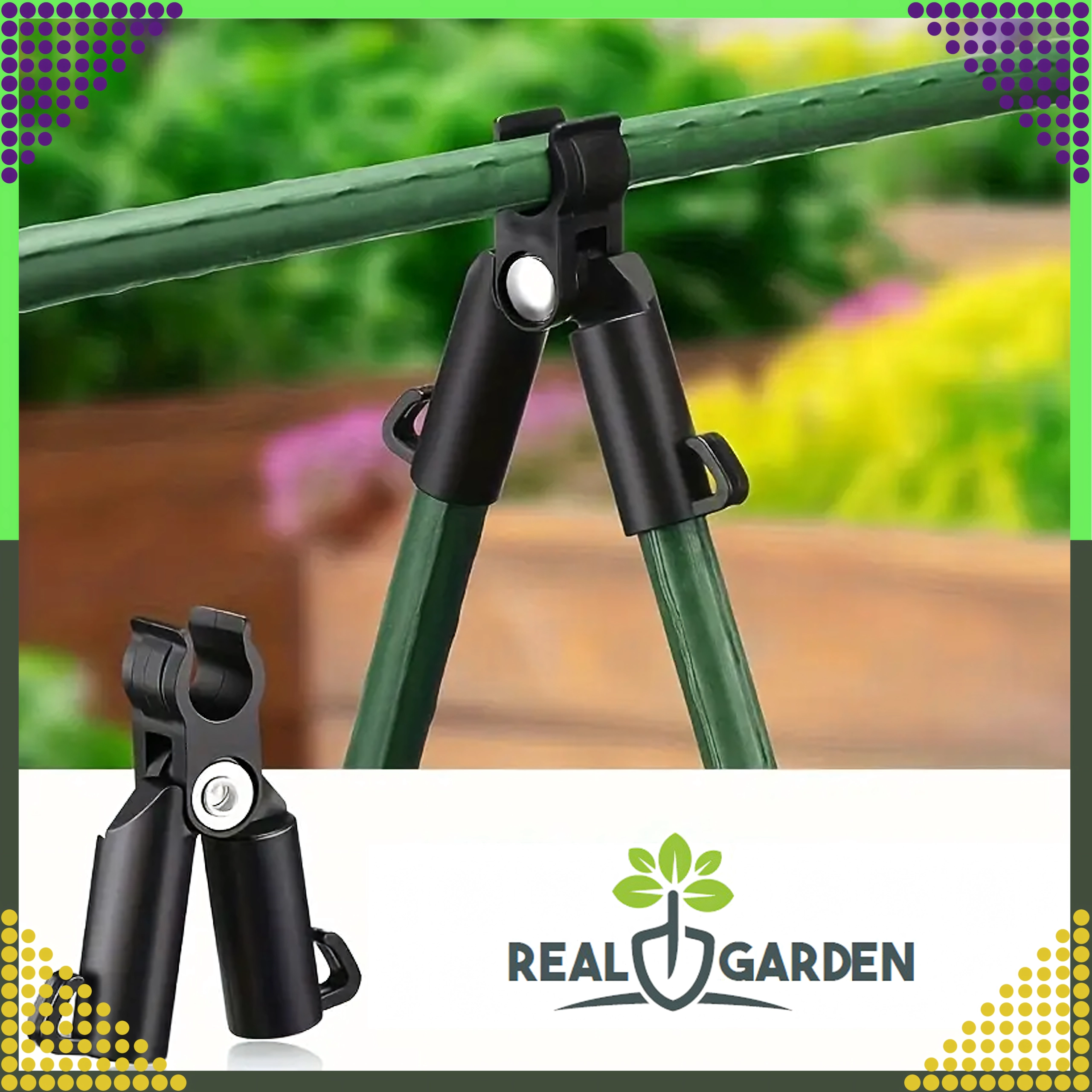 L’installazione è rapida e intuitiva: basta farlo scorrere sui pali e creare un triangolo di vertice o una trave trasversale. Questo giunto a T con snodo è perfetto per serre, tunnel e aiuole, e aiuta a mantenere le piante nella giusta direzione di crescita.