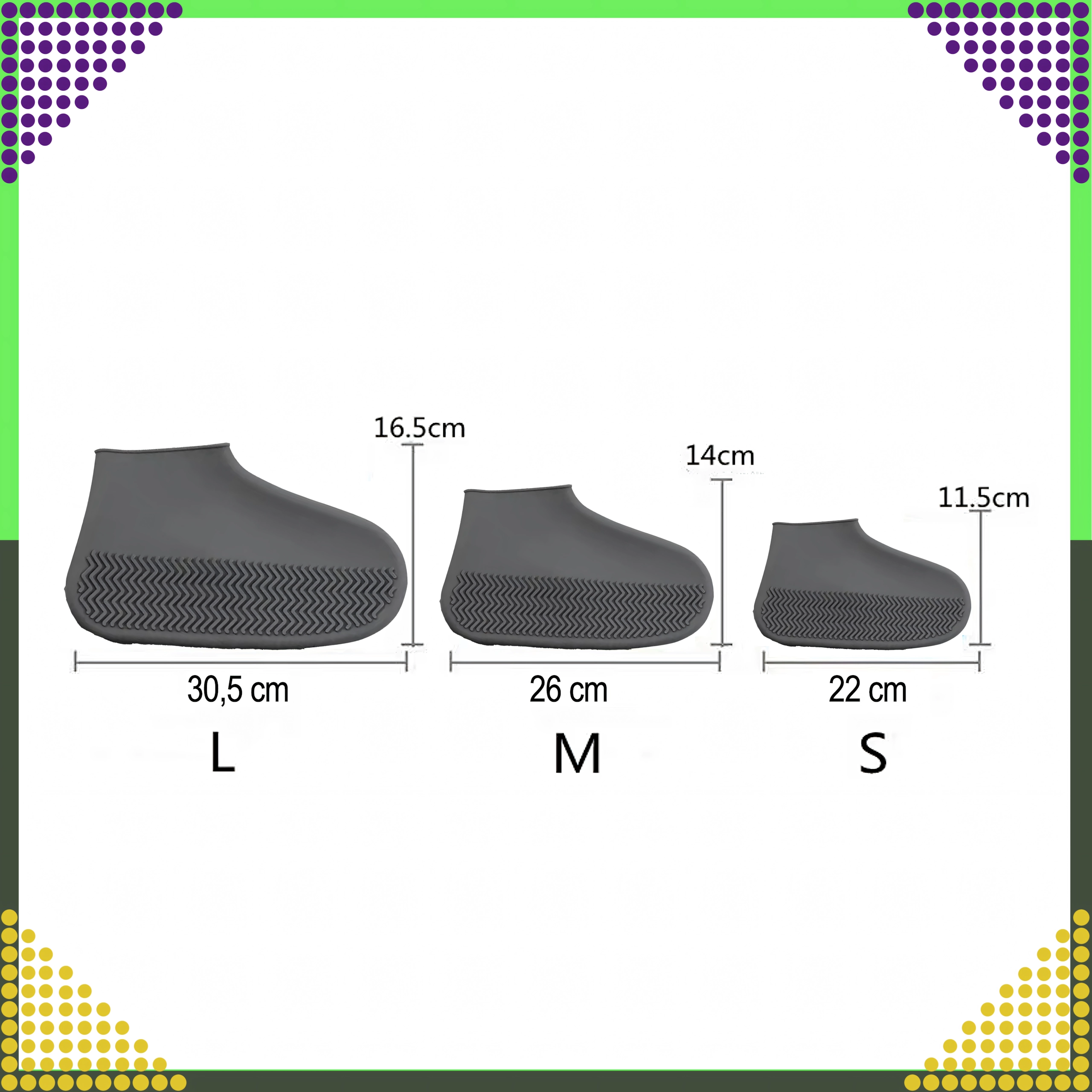 Basta calze bagnate e scarpe rovinate. I copriscarpe in silicone sono leggeri, compatti e riutilizzabili: ideali in città, per andare al lavoro e per le gite. Il silicone flessibile si adatta alla forma della scarpa, aderisce saldamente e protegge da acqua e sporco.
