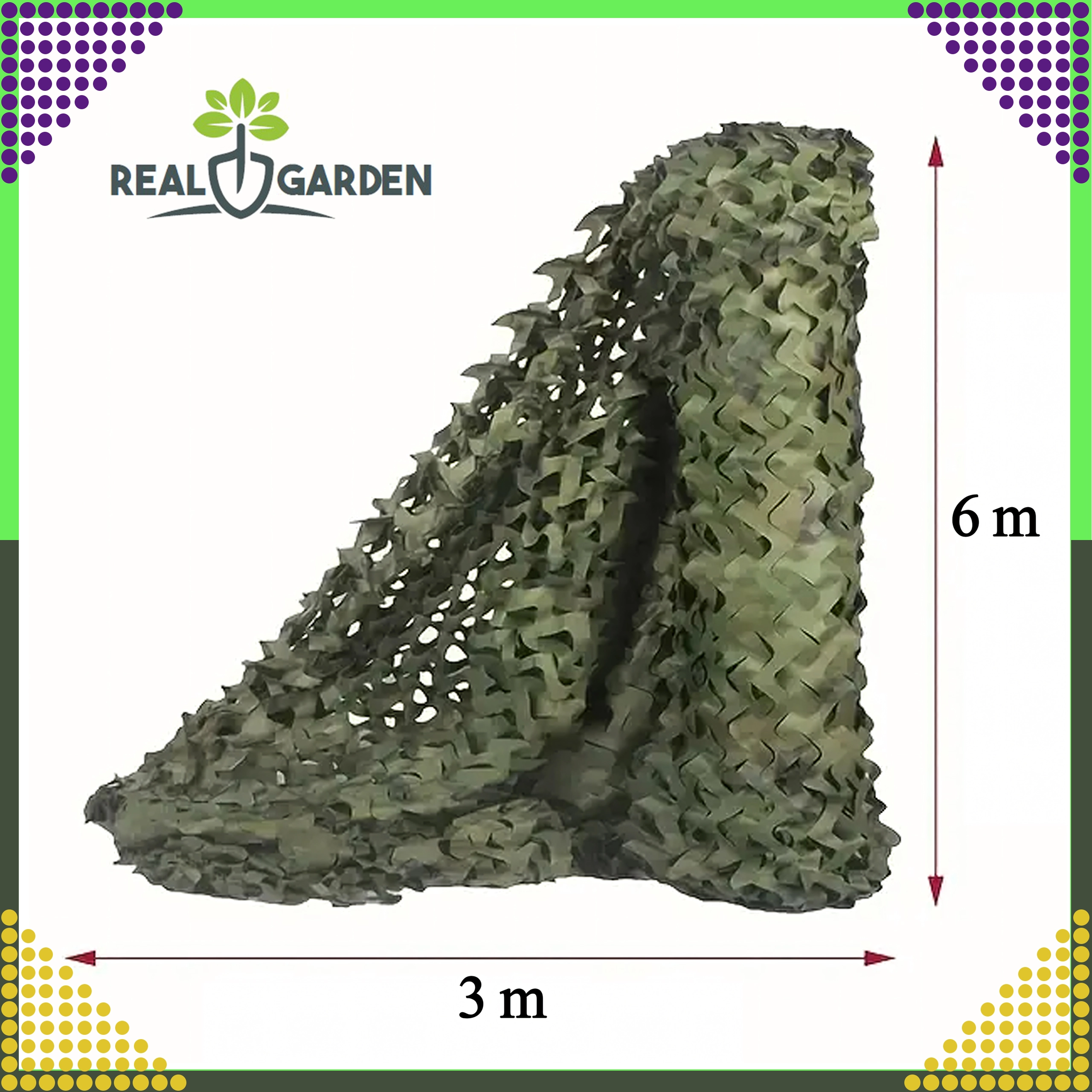 Puoi usarla come telo ombreggiante sopra terrazza, pergola o tenda, per camuffamento durante attività outdoor oppure come elemento decorativo dallo stile militare. Grazie alle dimensioni 3 × 6 m copre facilmente superfici più ampie e offre un’ombra piacevole.