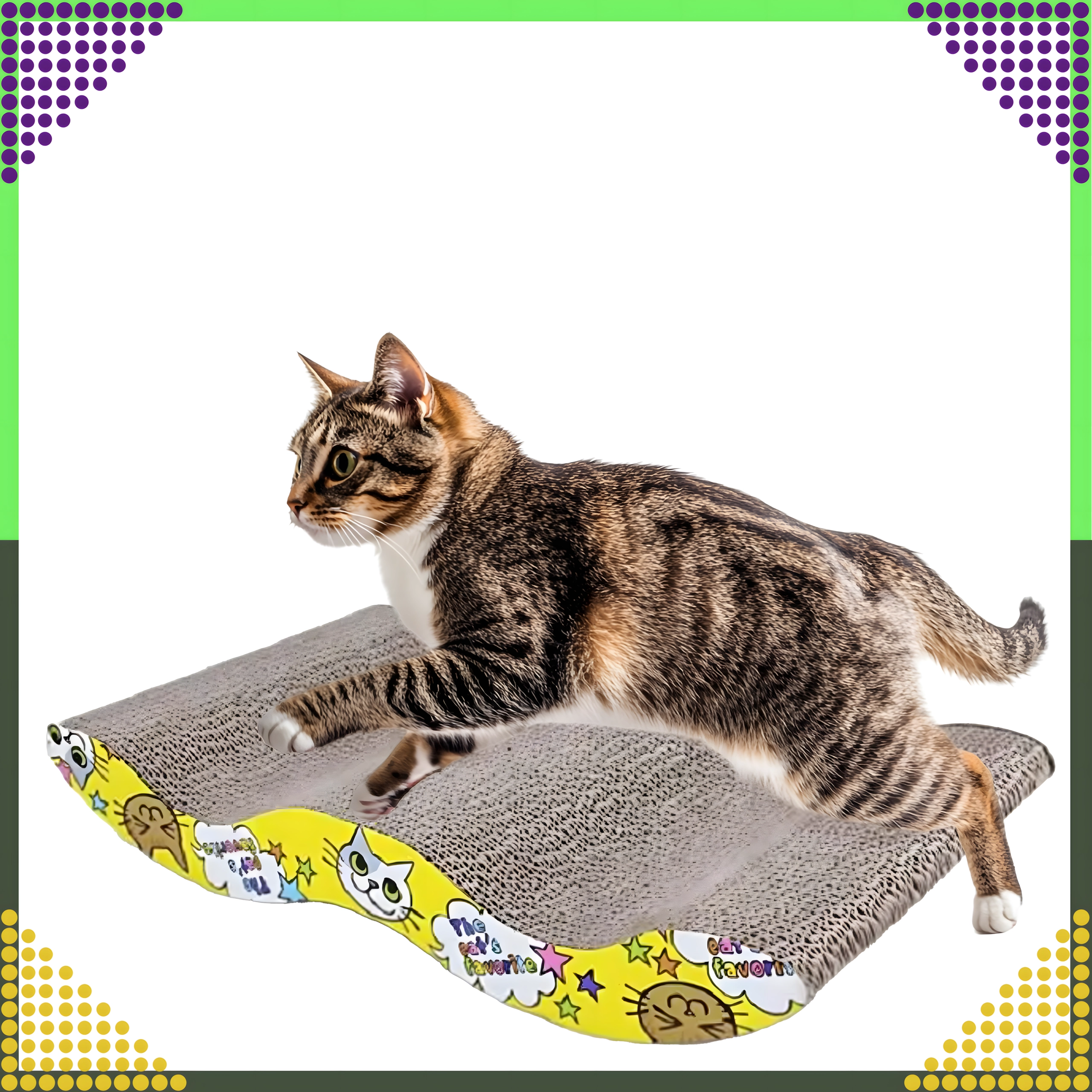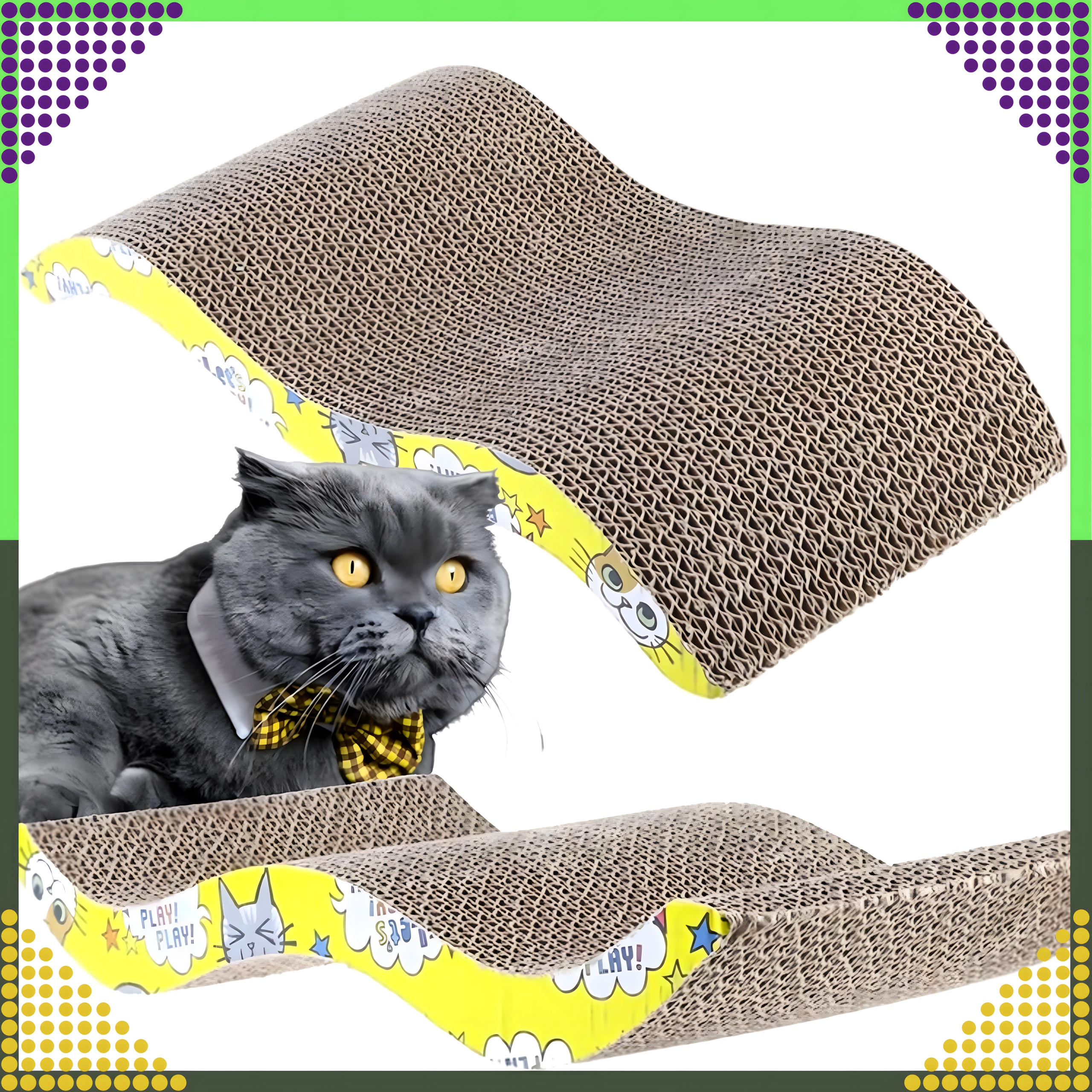 Il tiragraffi favorisce movimento naturale, gioco e attività sia per gattini che per gatti adulti. La forma ondulata garantisce stabilità e comfort durante il riposo, fungendo sia da area relax che da divertente giocattolo.