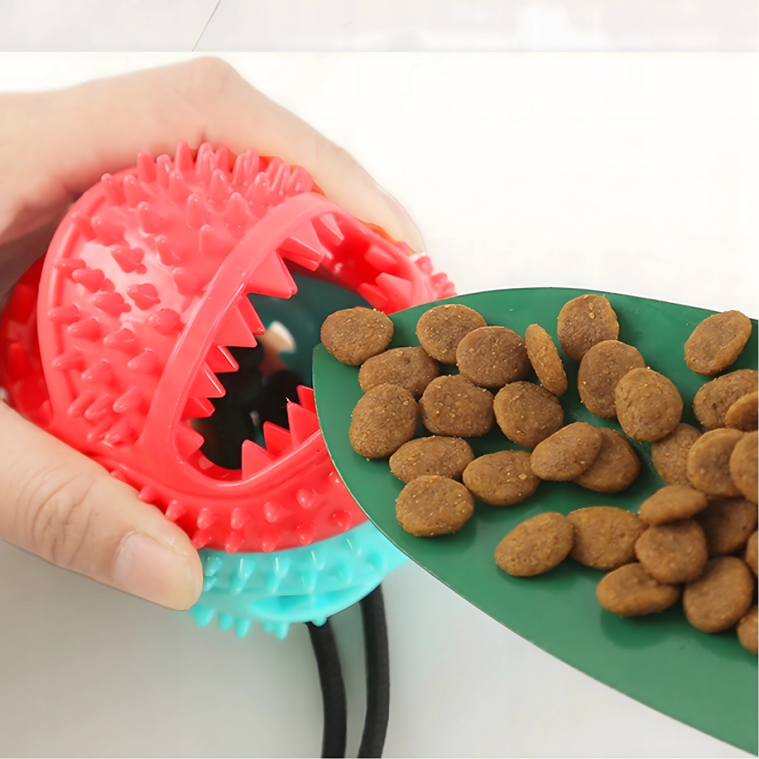 Questo giocattolo interattivo con ventosa combina una palla portasnack con una corda per tirare e masticare. La ventosa si fissa facilmente su superfici lisce e il cane può giocare in sicurezza anche senza la tua assistenza. La struttura a spiky della palla aiuta a ridurre la placca e a prendersi cura delle gengive a ogni morso. L'apertura per gli snack favorisce un assorbimento del cibo più lento e prolunga il divertimento.