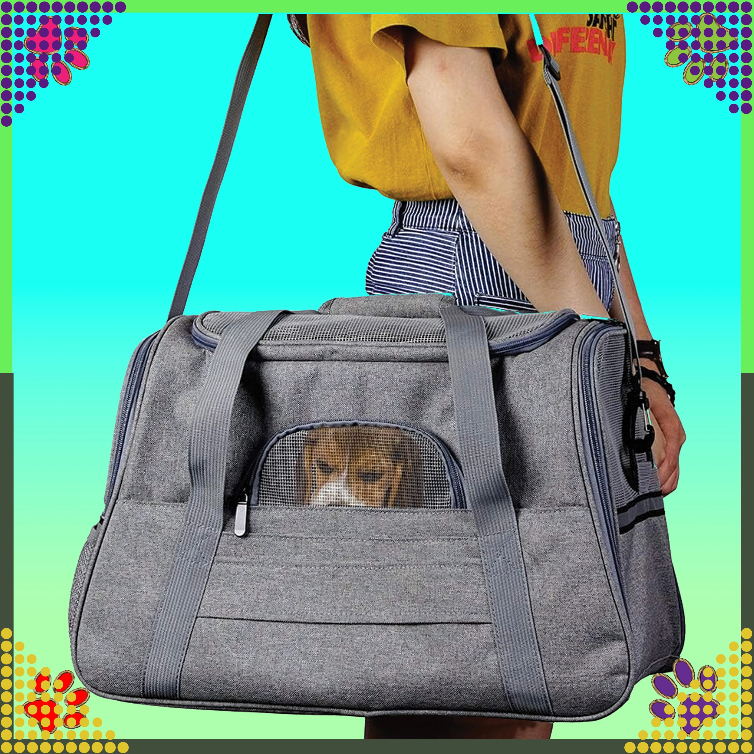 Pratico e leggero trasportino per animali domestici che garantisce comfort e sicurezza durante i viaggi. Il poliestere resistente non assorbe gli odori, è anti-macchia e resistente alle intemperie e offre spazio sufficiente per cani di piccola taglia, gatti o cavie. Ideale per l’auto e per brevi spostamenti.