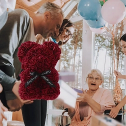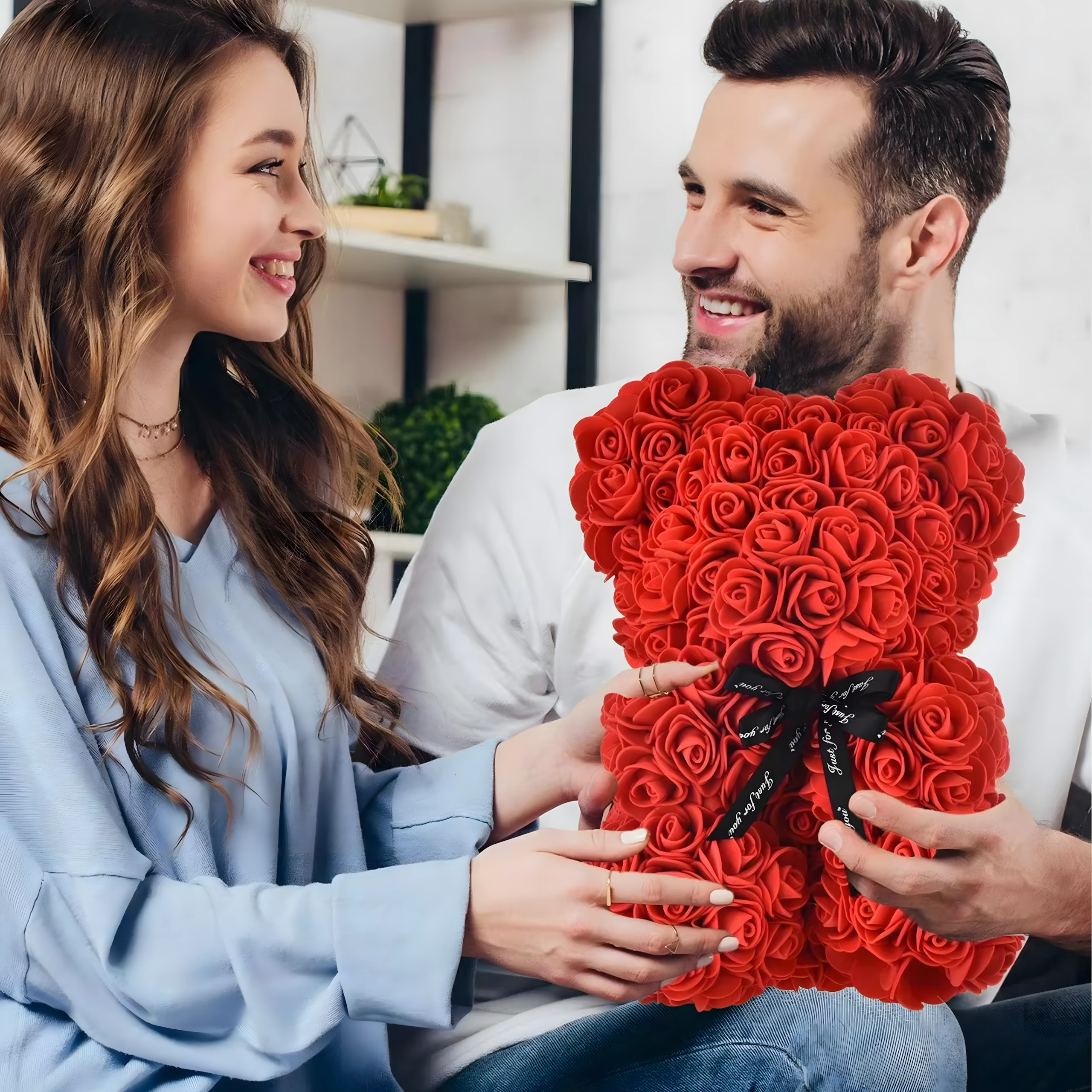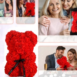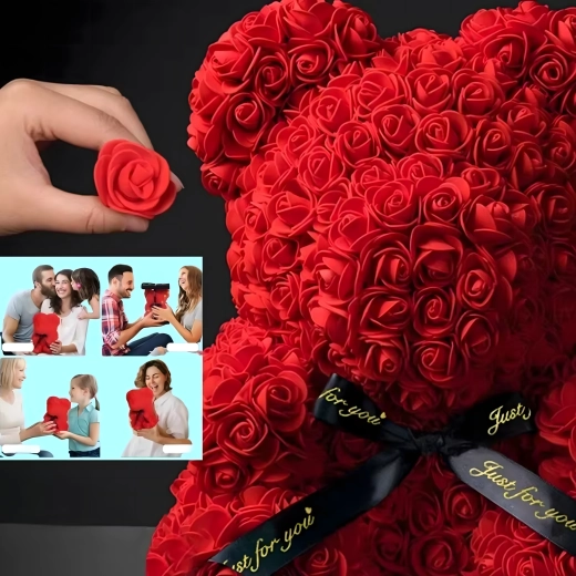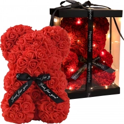 Regala emozioni che non appassiscono. Questo orsetto di rose artificiali nell’elegante colore rosso con illuminazione LED integrata crea un’atmosfera magica a cena, alle feste e a casa. È un regalo romantico per mamma, fidanzata o nonna, destinato a diventare una decorazione di stile e un ricordo duraturo.