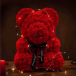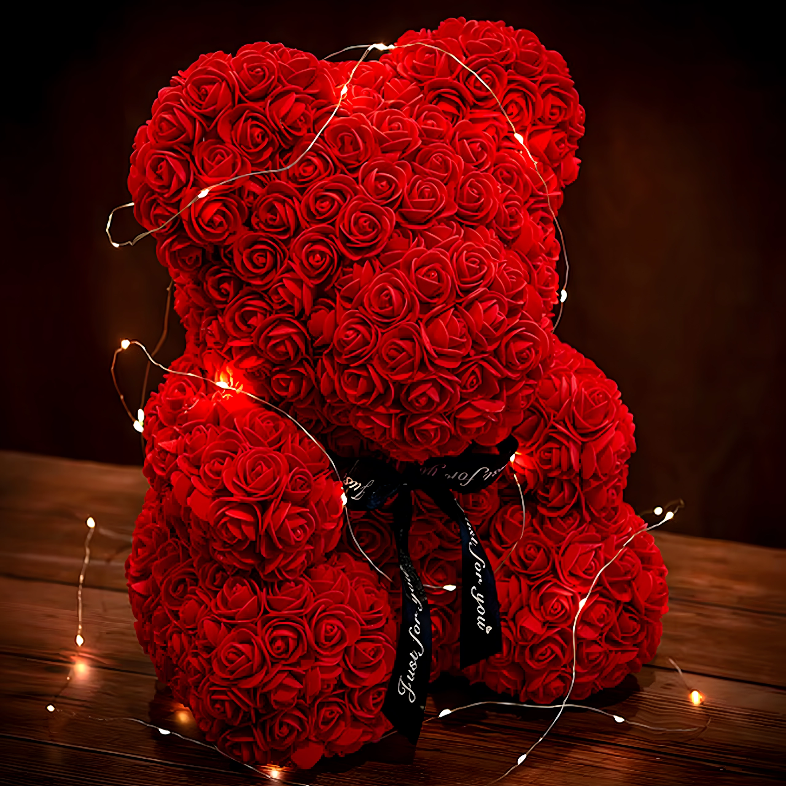 L’orsetto di rose con LED è un pezzo decorativo iconico che unisce la delicatezza delle rose a una luce accogliente. I piccoli fiori in schiuma resistente, assemblati a mano, mantengono a lungo forma e colore, mentre i LED a luce calda donano a ogni ambiente un tocco romantico senza pensieri di cura.