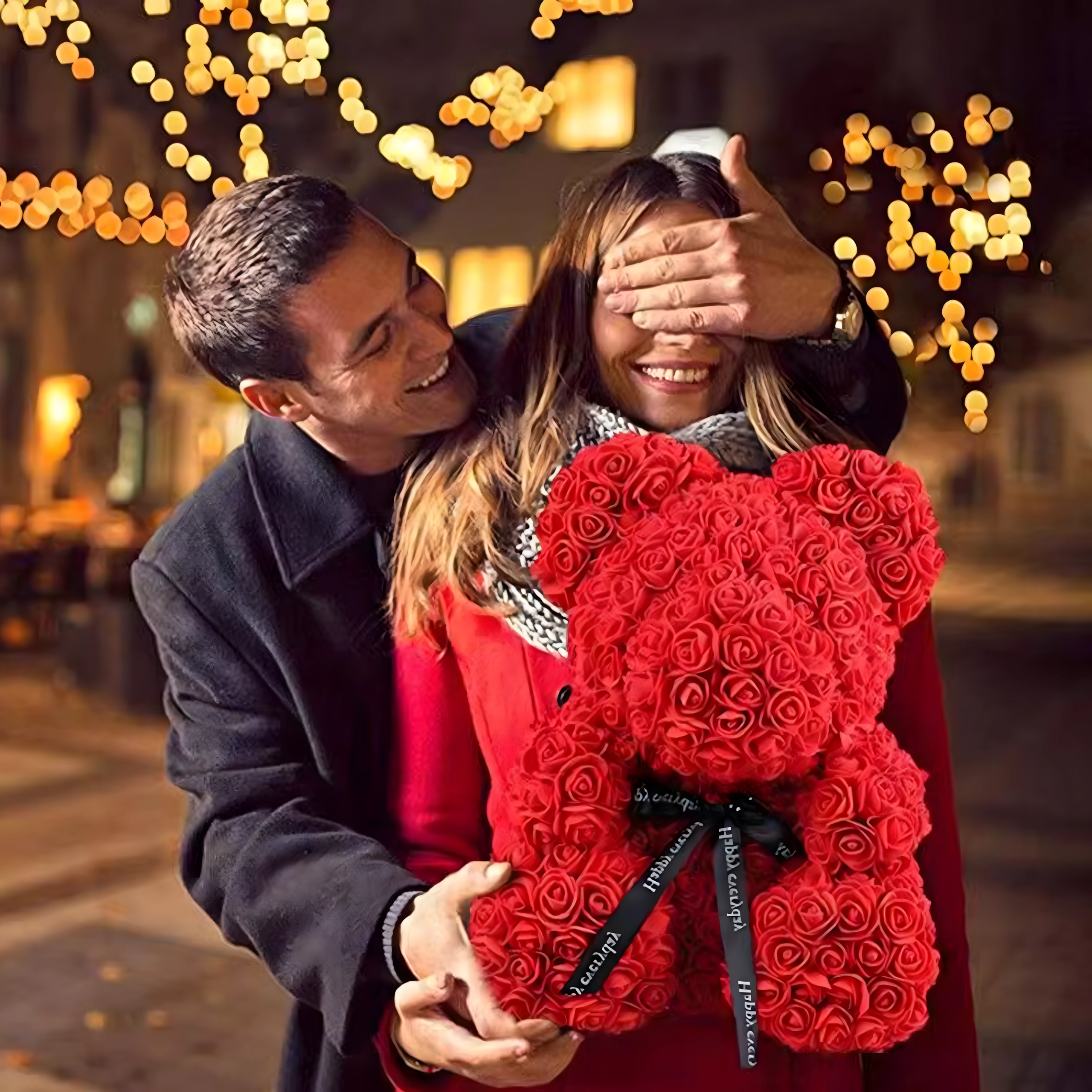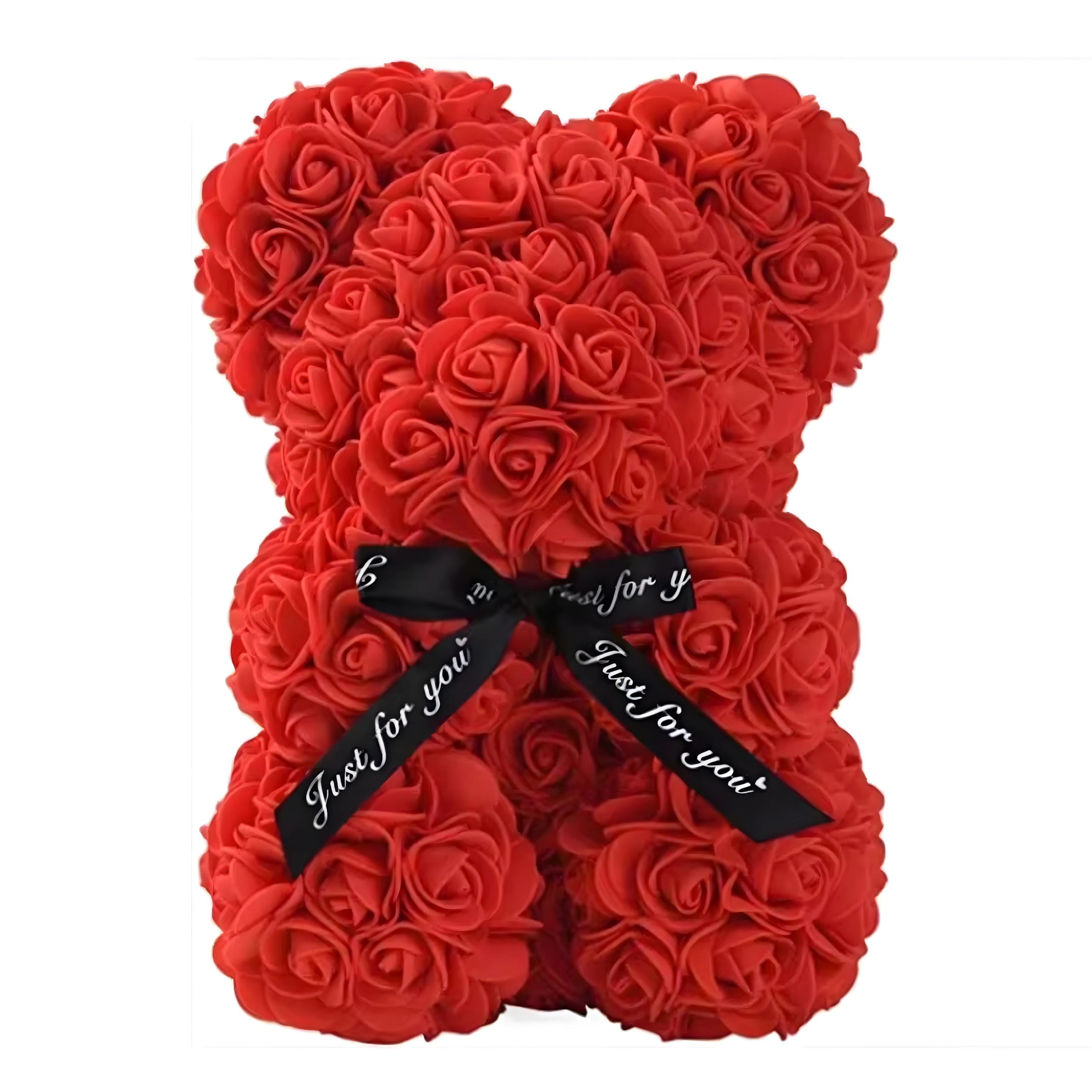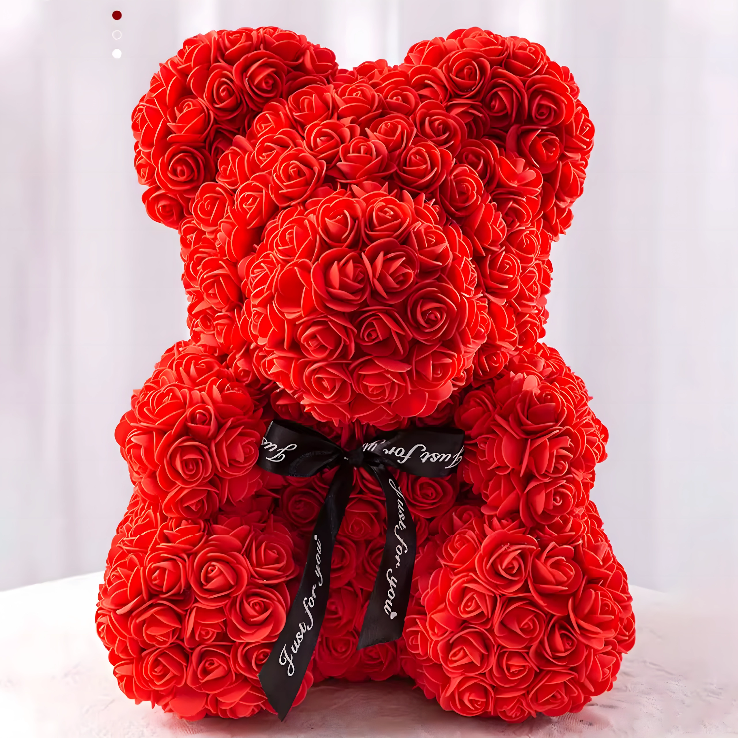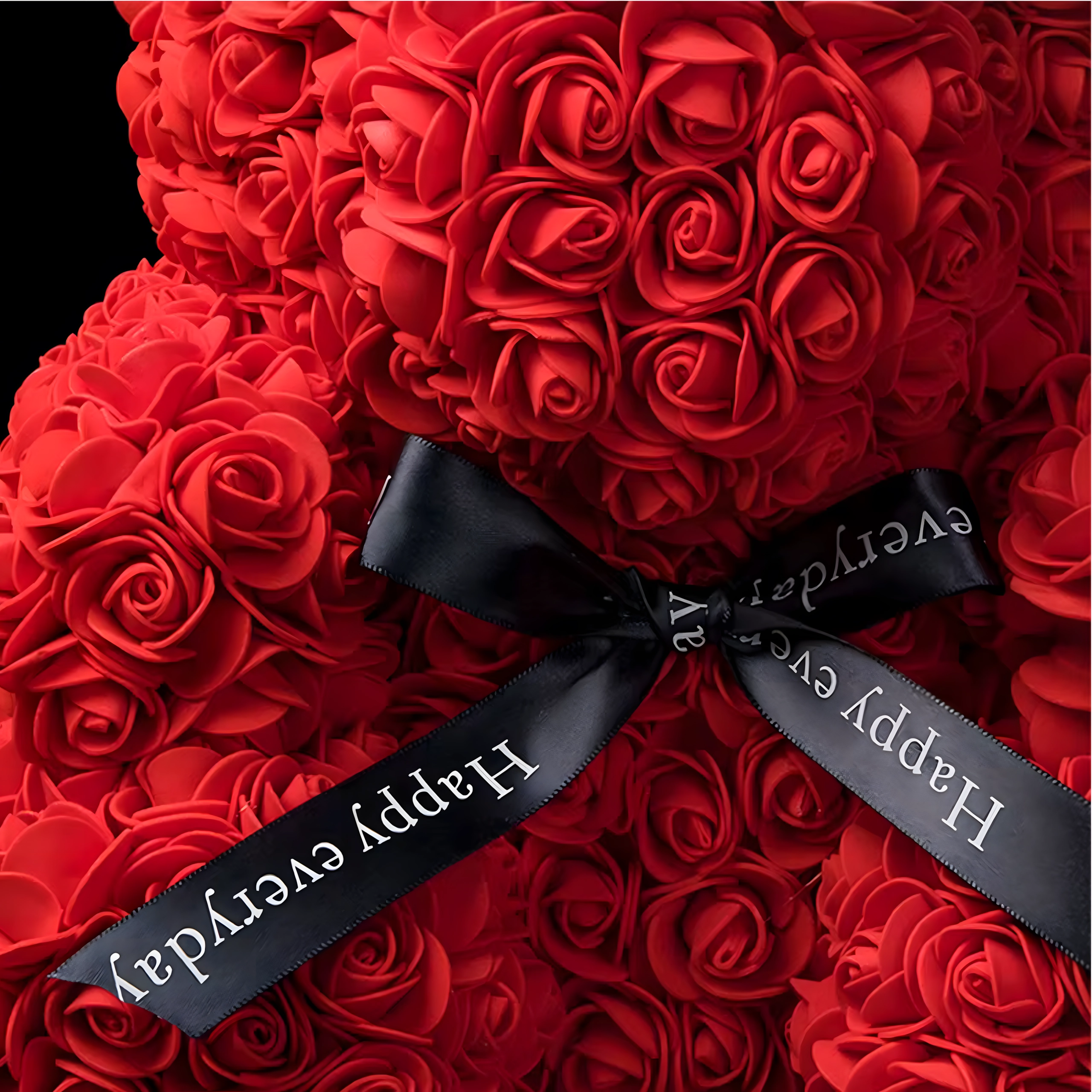 Decine di boccioli rosa modellati con cura creano la silhouette iconica dell’orsetto. Il materiale è indelebile nel tempo e richiede poca manutenzione.