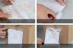 La forte superficie adesiva posteriore (hot‑melt) garantisce un'adesione salda a scatole di cartone, imballaggi in film e stretch. Il lato anteriore trasparente consente la scansione immediata dei codici senza rimuovere il documento, velocizzando smistamento e consegna.