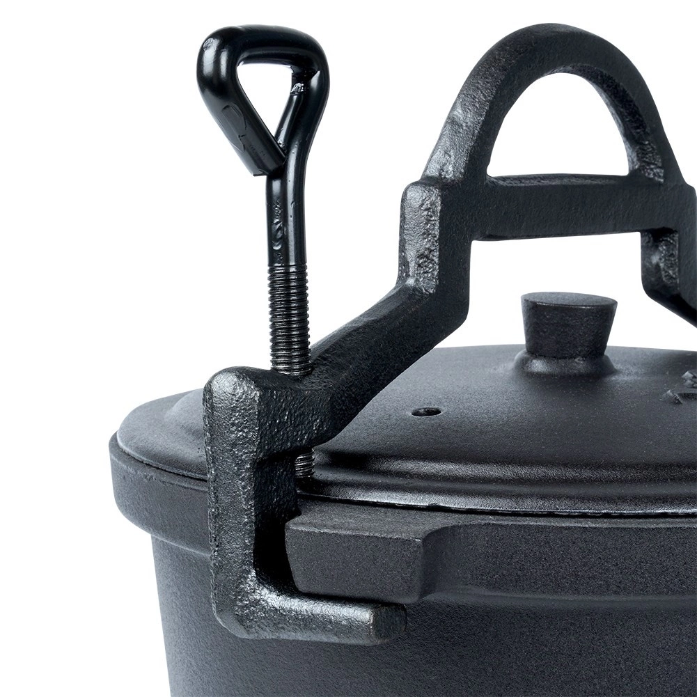 Con un volume di 8 litri è perfetto per gulasch, zuppe, carni e verdure stufate. La distribuzione uniforme del calore riduce i tempi di cottura ed esalta il sapore. La pratica maniglia superiore per sospensione e trasporto, completata da maniglie laterali, facilita la movimentazione sul campo.